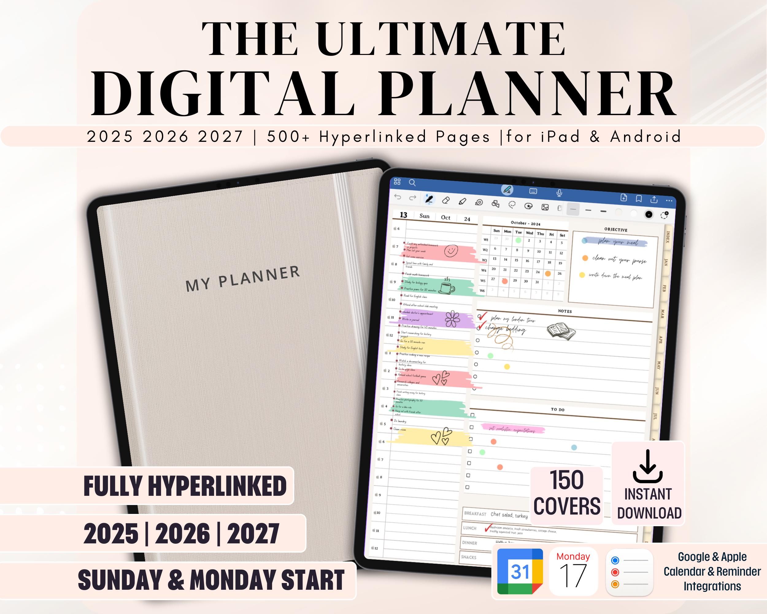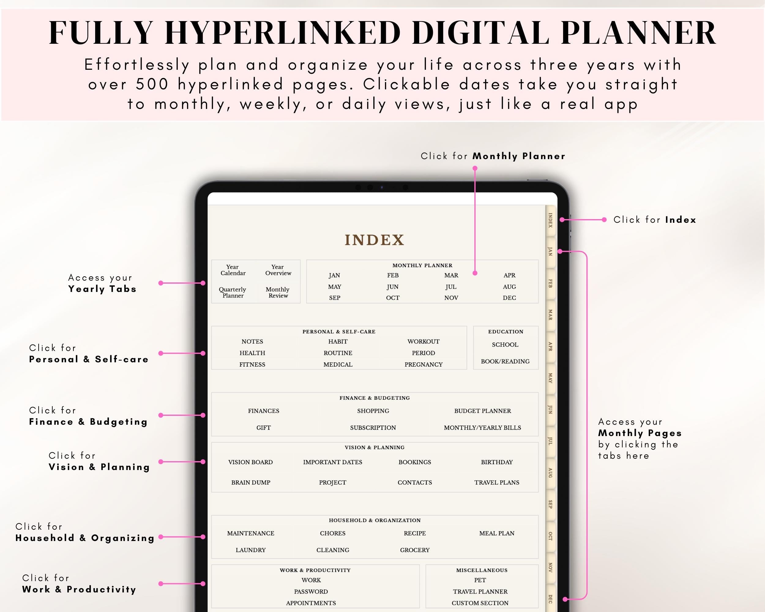 Plan your life with ease using this hyperlinked digital planner covering 2025–2027 across 500+ interactive pages. Designed for smooth navigation, fast planning, and a playful digital experience.