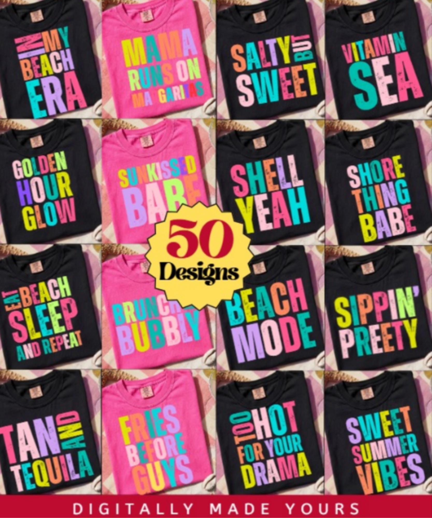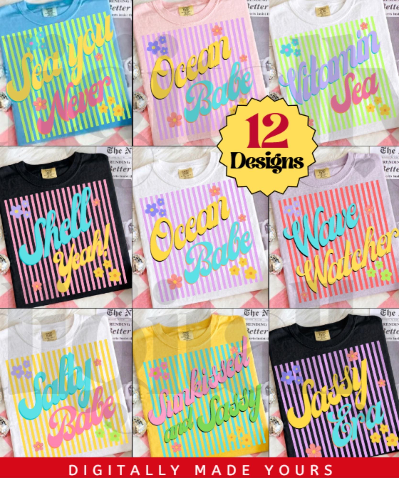 Create stylish summer products with this Summer PNG Bundle, featuring high-resolution transparent graphics perfect for seasonal crafting and printing. With girly bows, retro art, and beach-inspired elements, this collection is ideal for trendy apparel, gifts, and party creations.