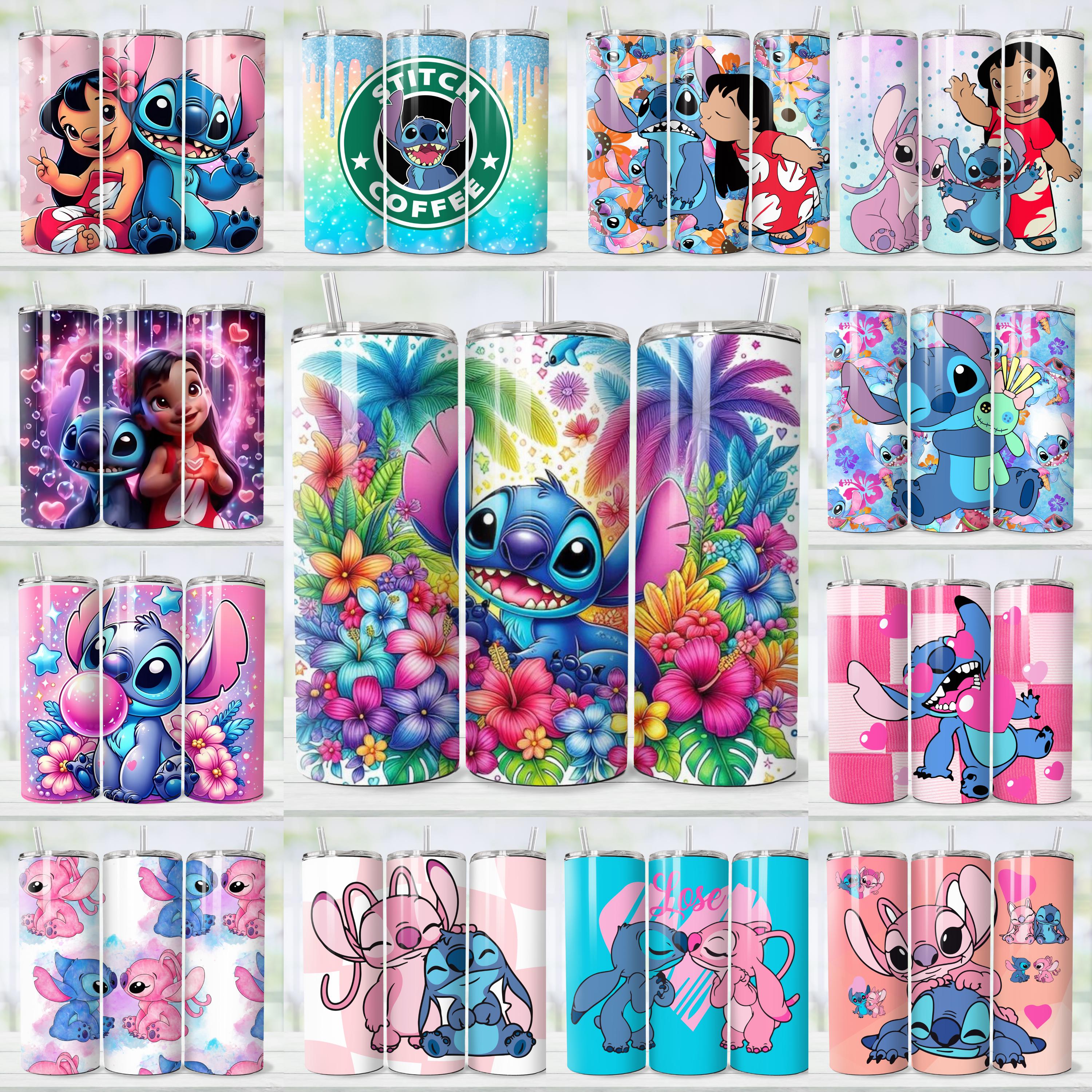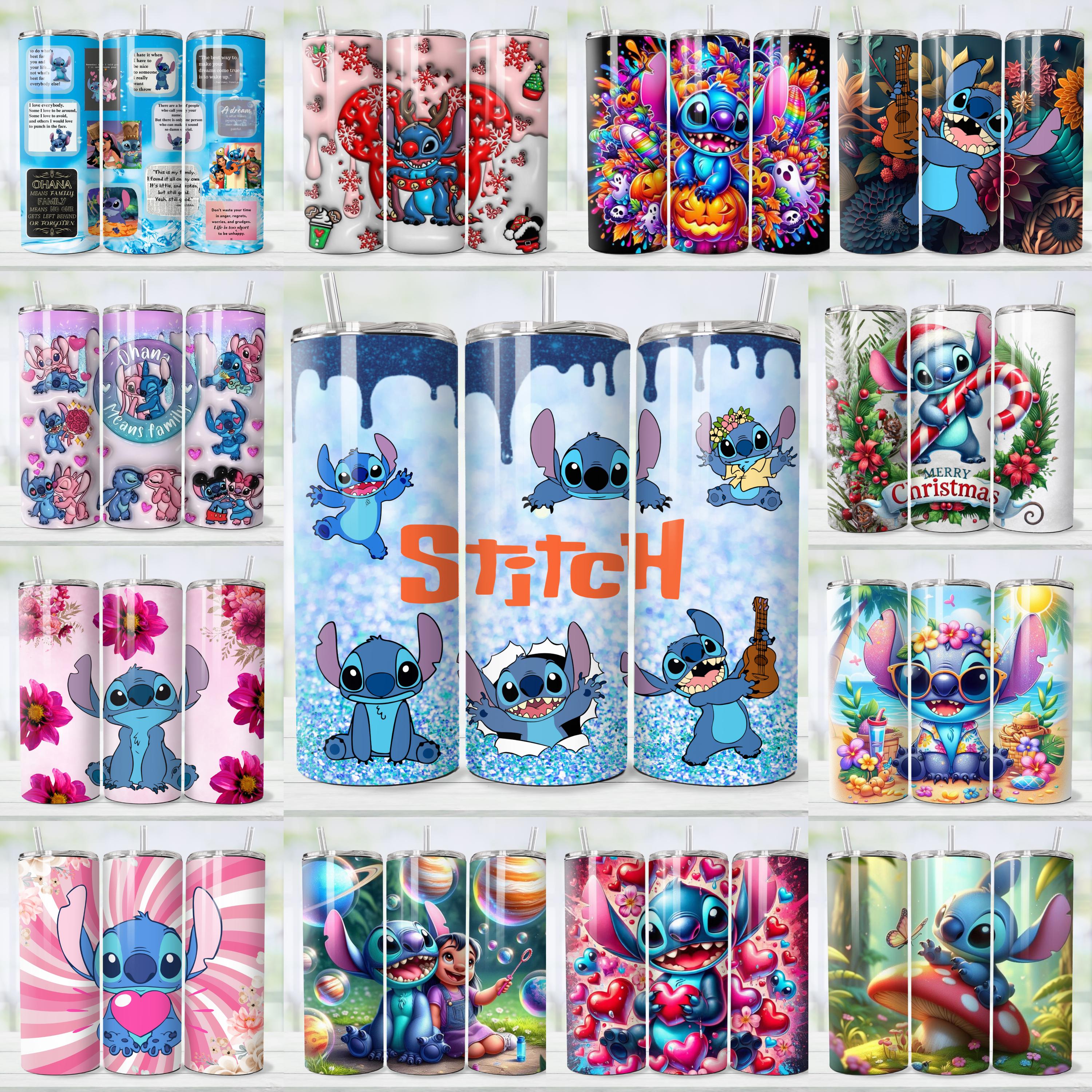 Stitch Tumbler Wrap PNG Bundle | 20oz Skinny Sublimation Designs | 3D Cartoon Wraps 300 DPI