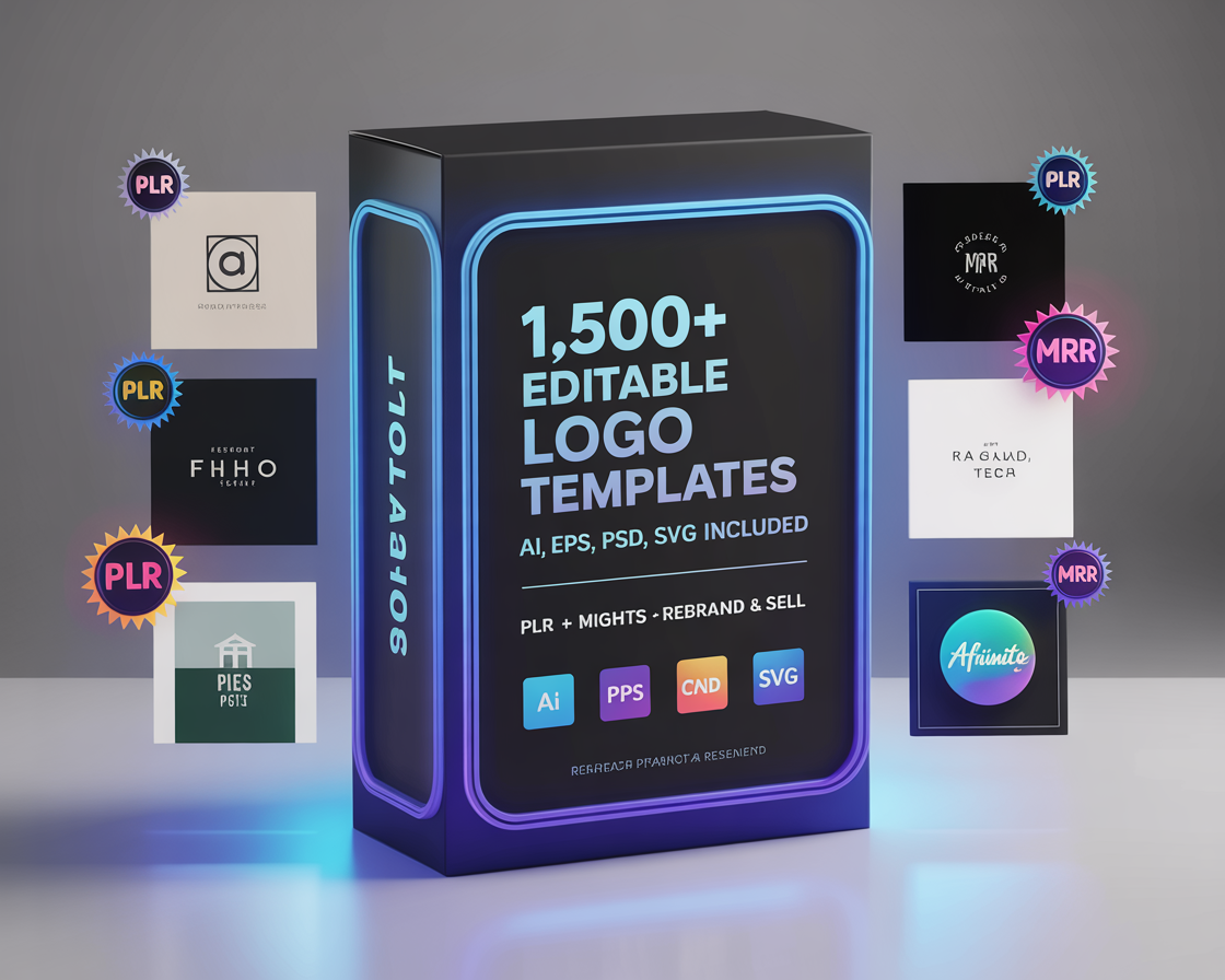1,500+ Logo Templates Bundle | Editable Designs for Brands, Creators & Businesses | SVG | PLR + MRR | Rebrand, Sell, Logo Bundle, Pro Logo