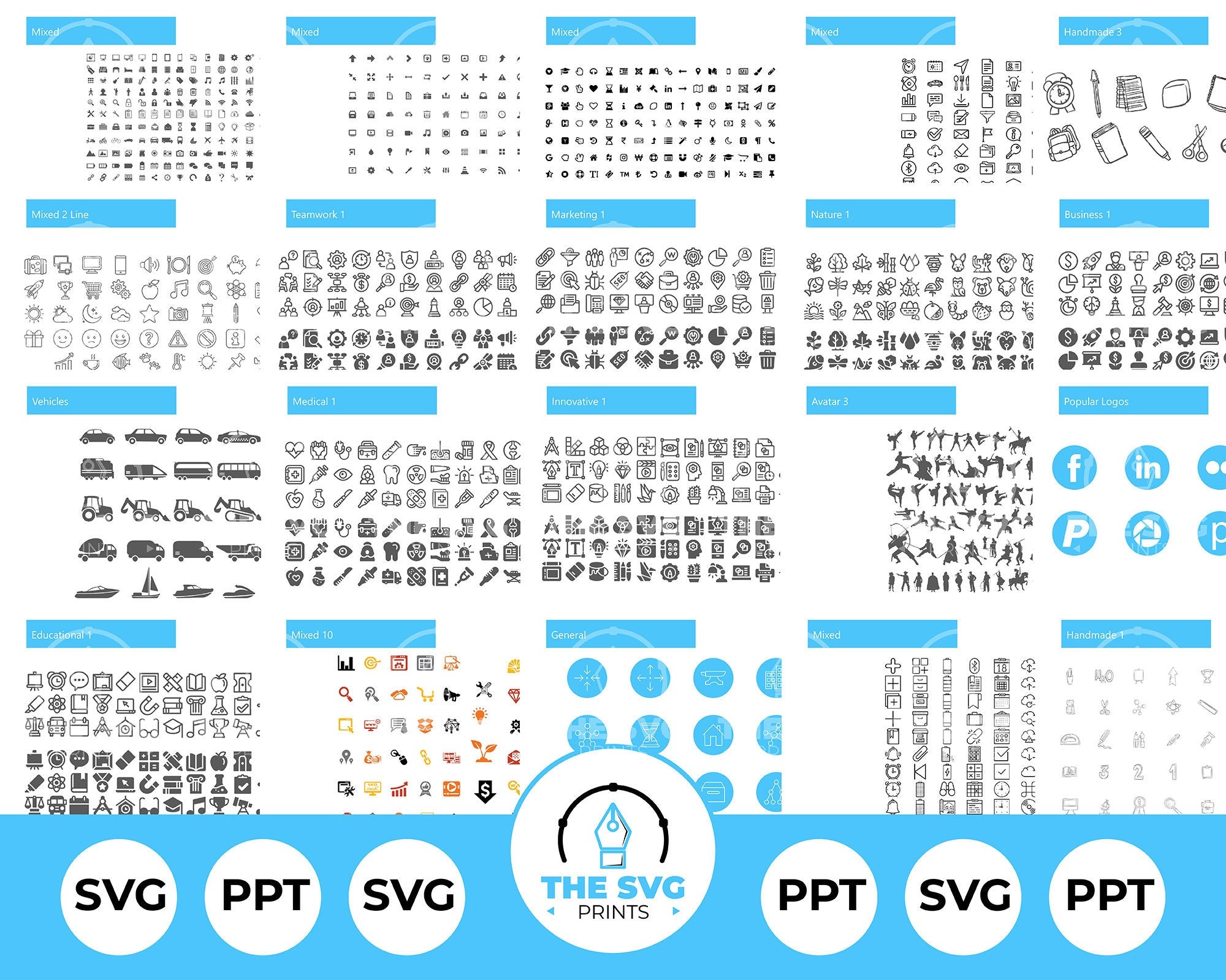 SVG (vector), PNG (transparent), PPT (PowerPoint file with all icons) |
