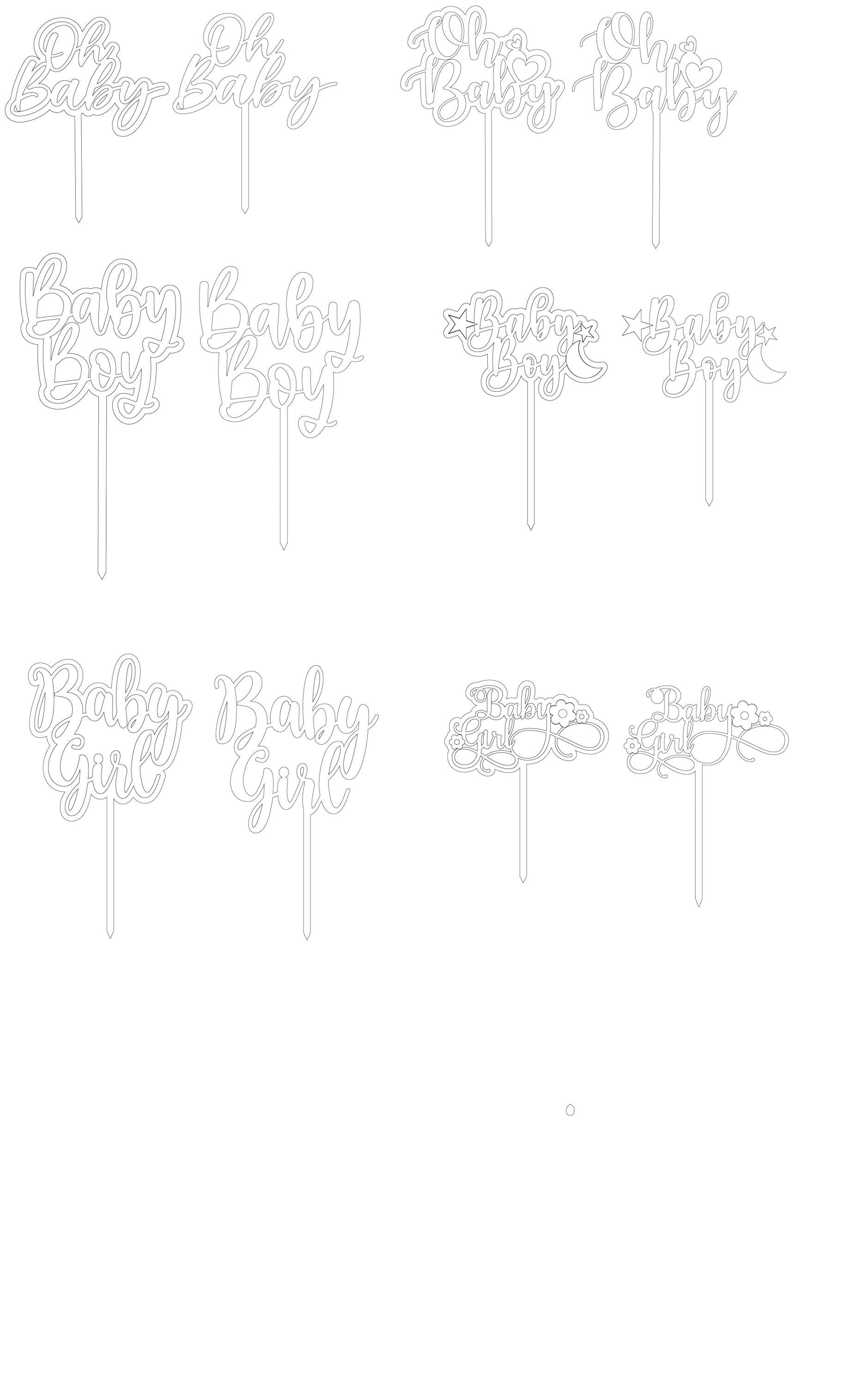 12 Baby Shower Cake Topper SVG Bundle for Laser Cutting