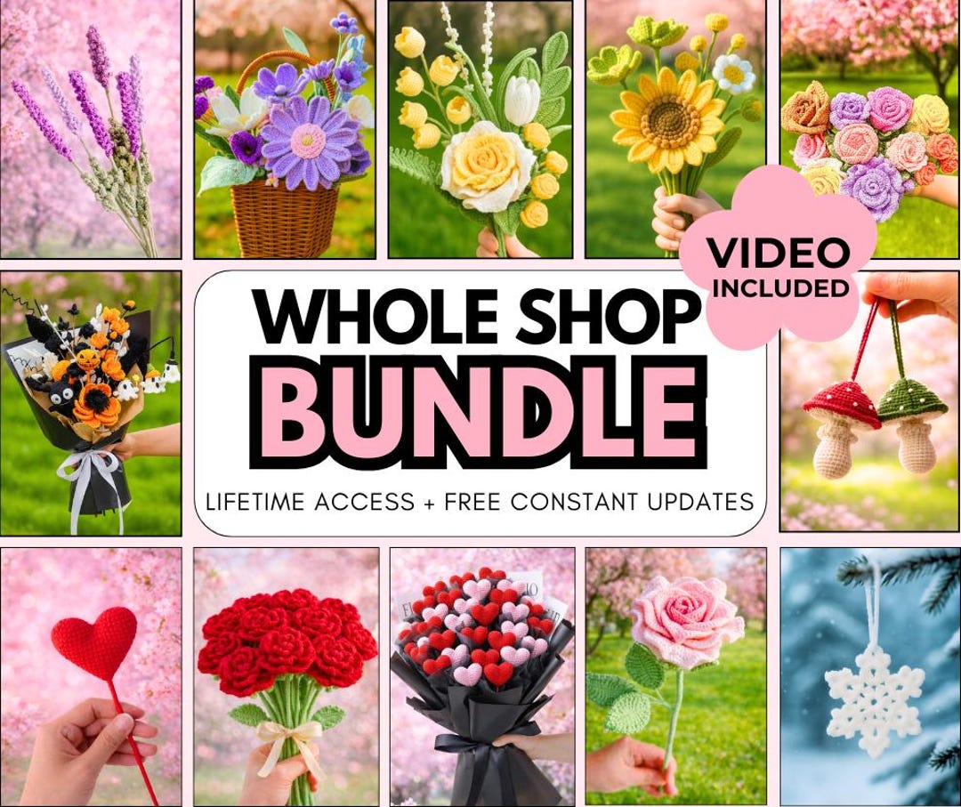 1500+ Flower Crochet Pattern Bundle PDF for Bouquets & Amigurumi