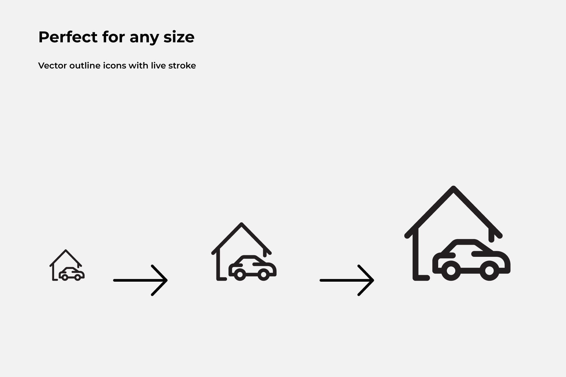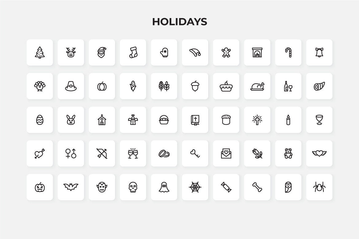 Monoline outlines remain sharp at small sizes and are effortless to recolor or adjust stroke width in any design app.