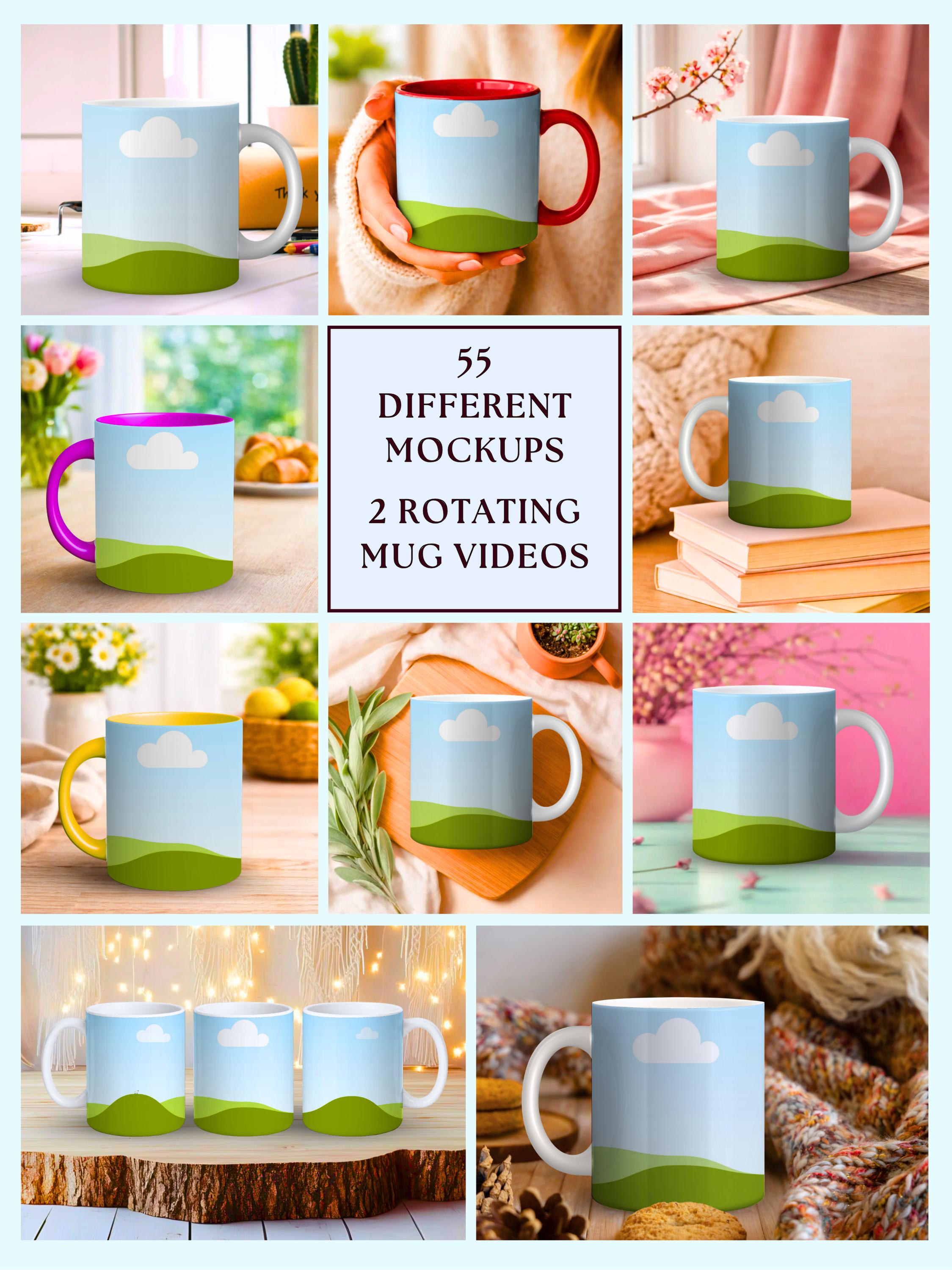 55 Editable Canva Mug Mockups Bundle with 2 Rotating Videos