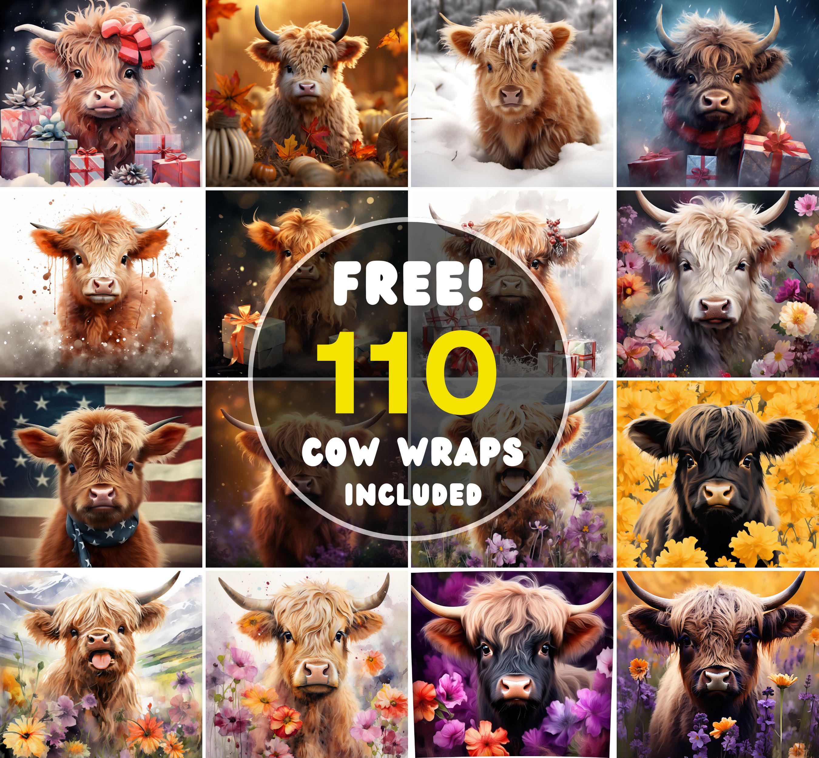 110 Highland cow wraps, 200 leopard wraps, 100 backgrounds |