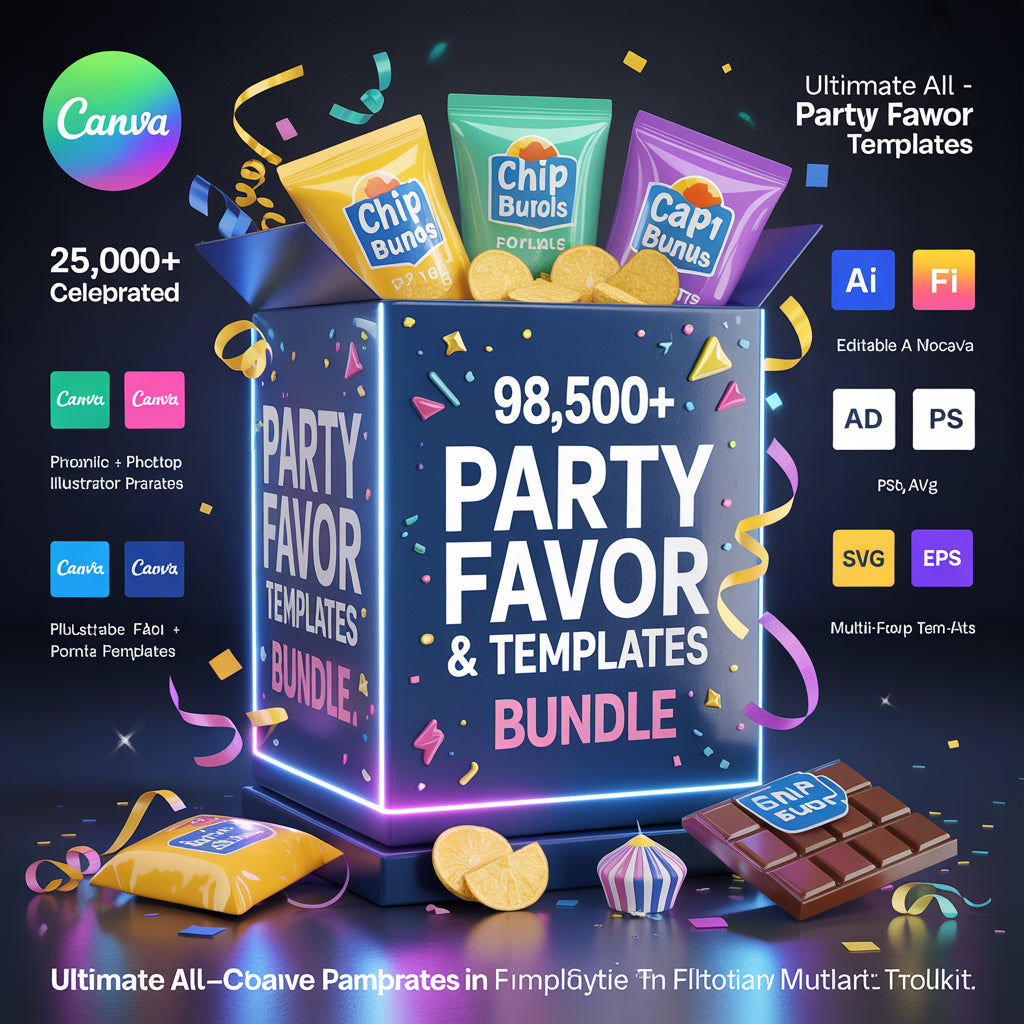 đ 98,000+ Party Favor Templates Bundle â Customizable Party Supplies & Mockups