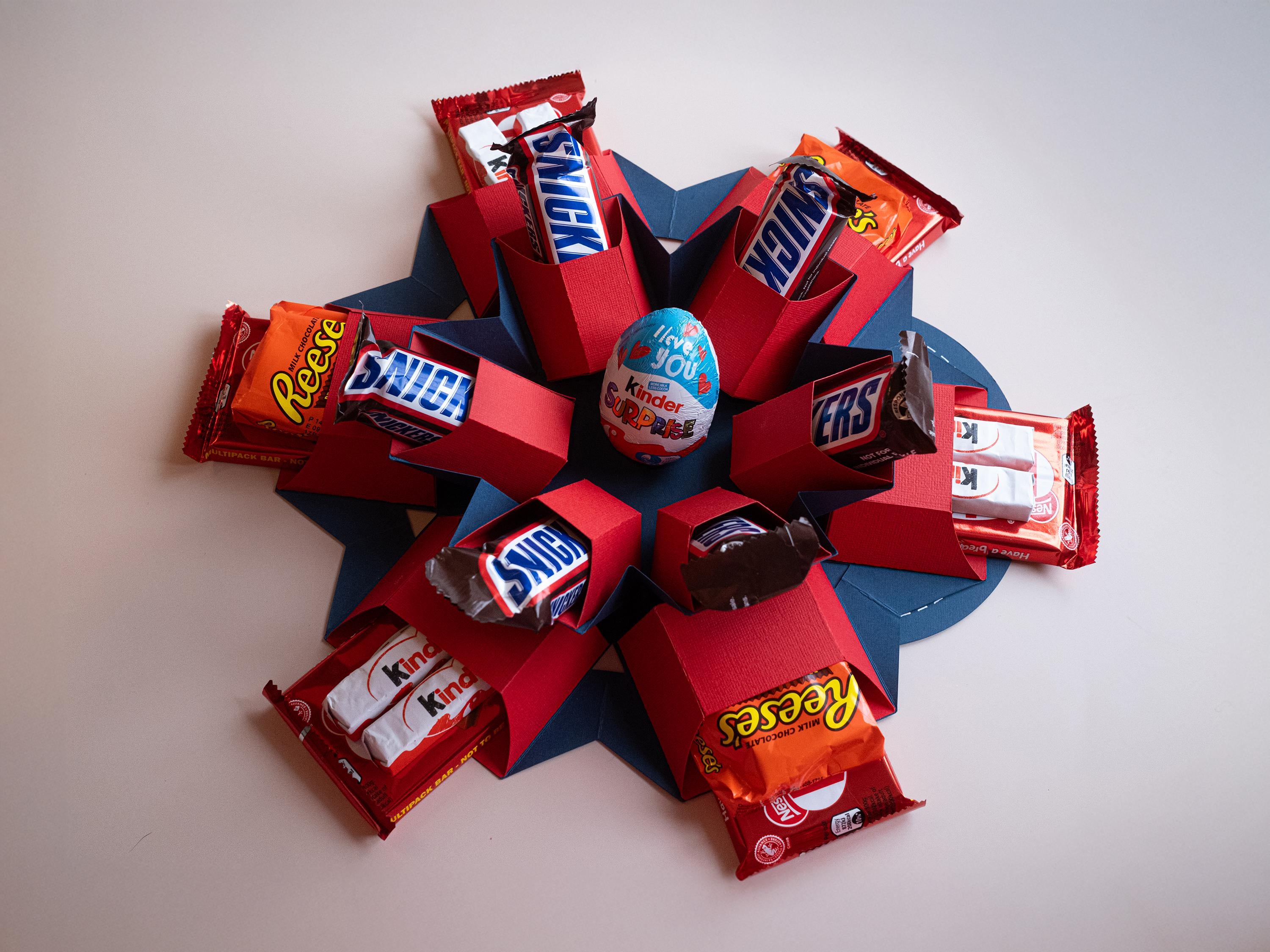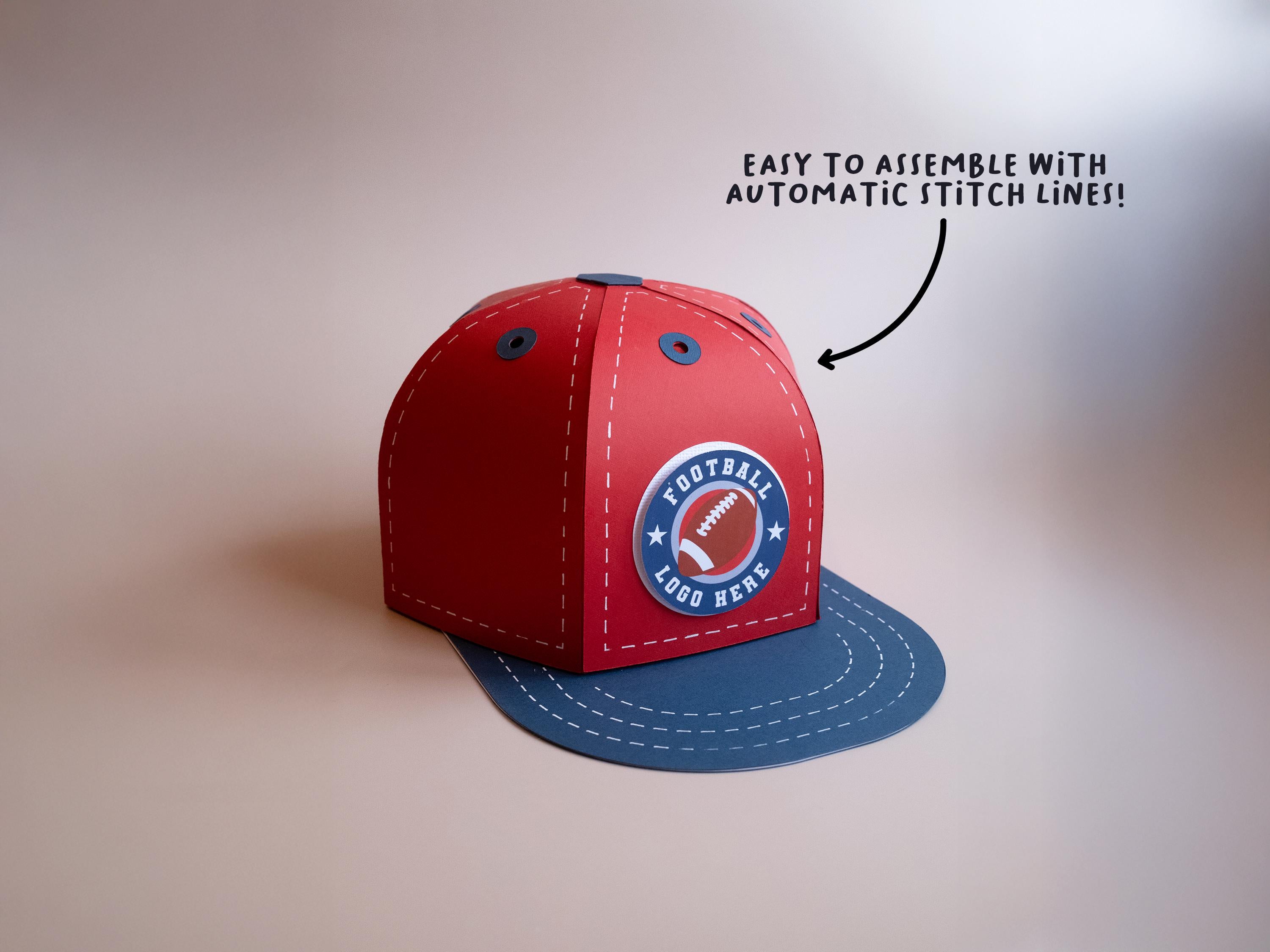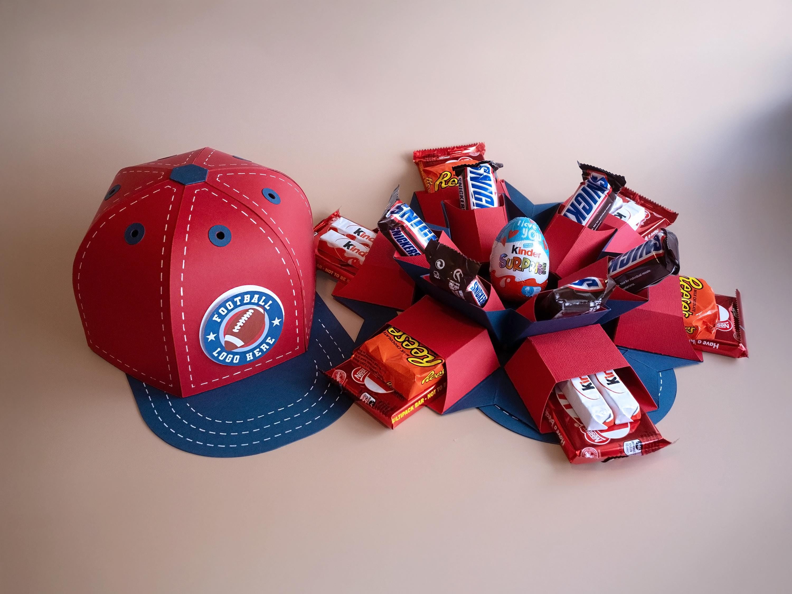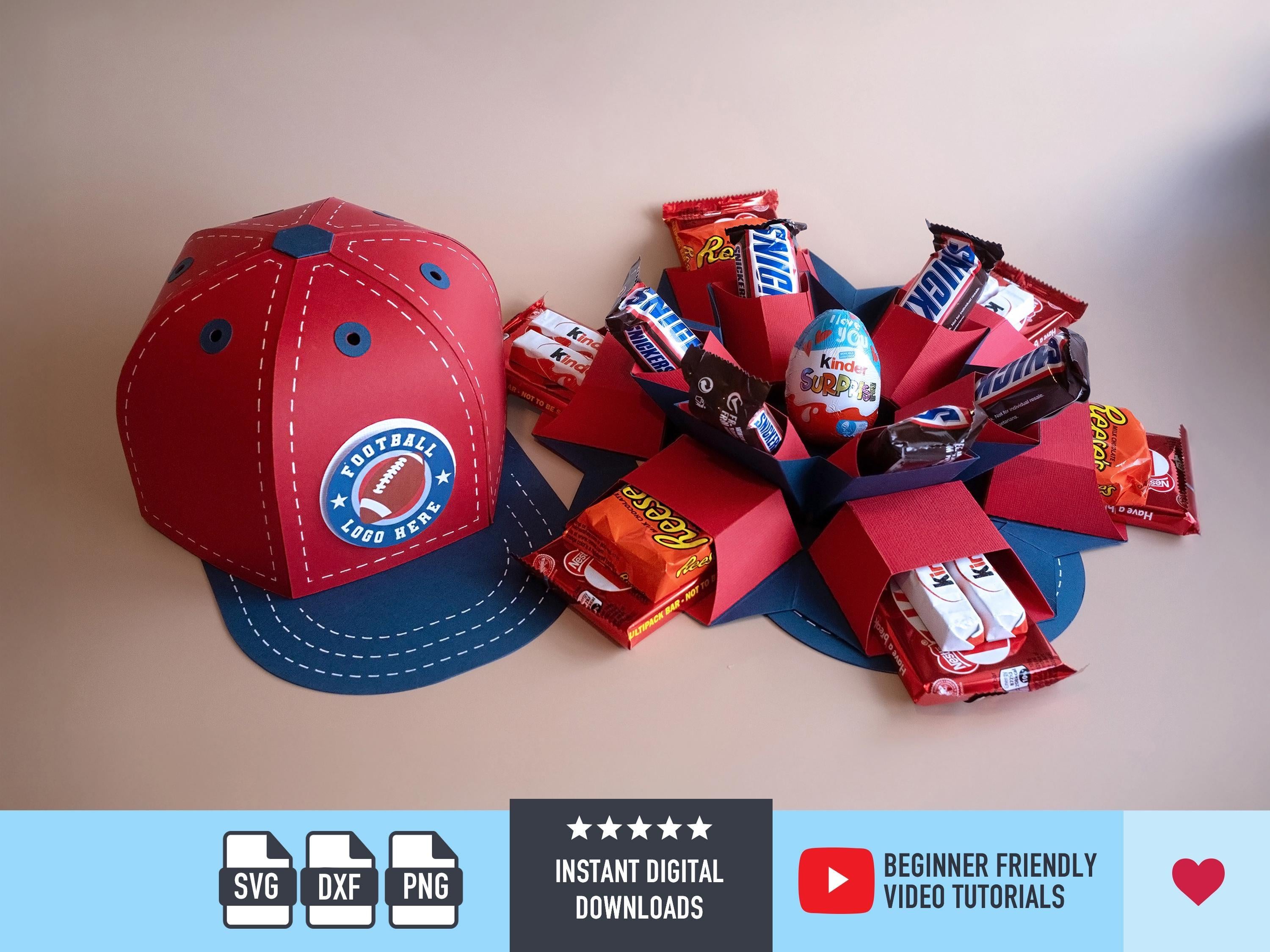 This playful digital template creates a 3D baseball-cap explosion gift box that assembles into a sturdy keepsake approximately 4.0 Inches Diameter And 3.5 Inches Tall.