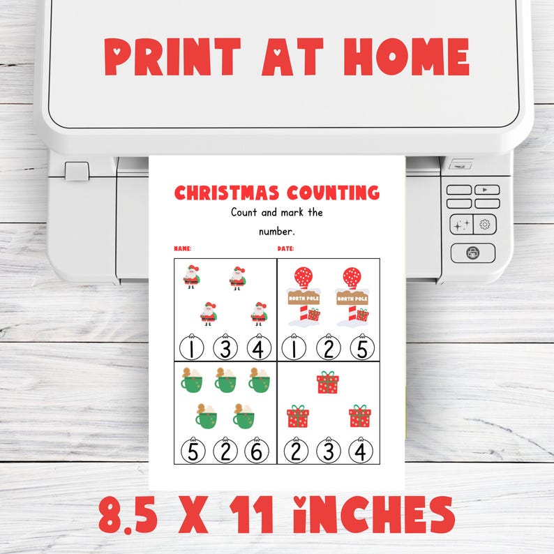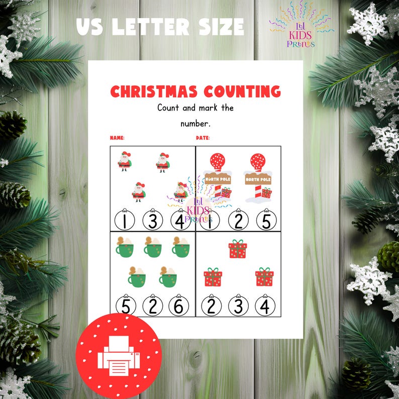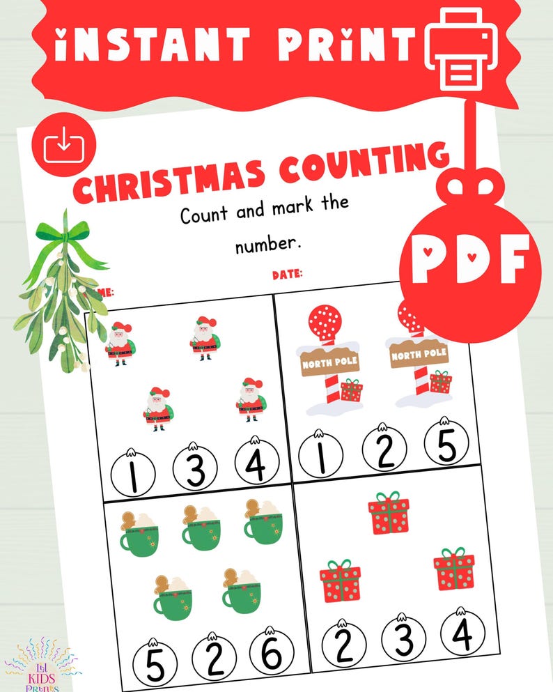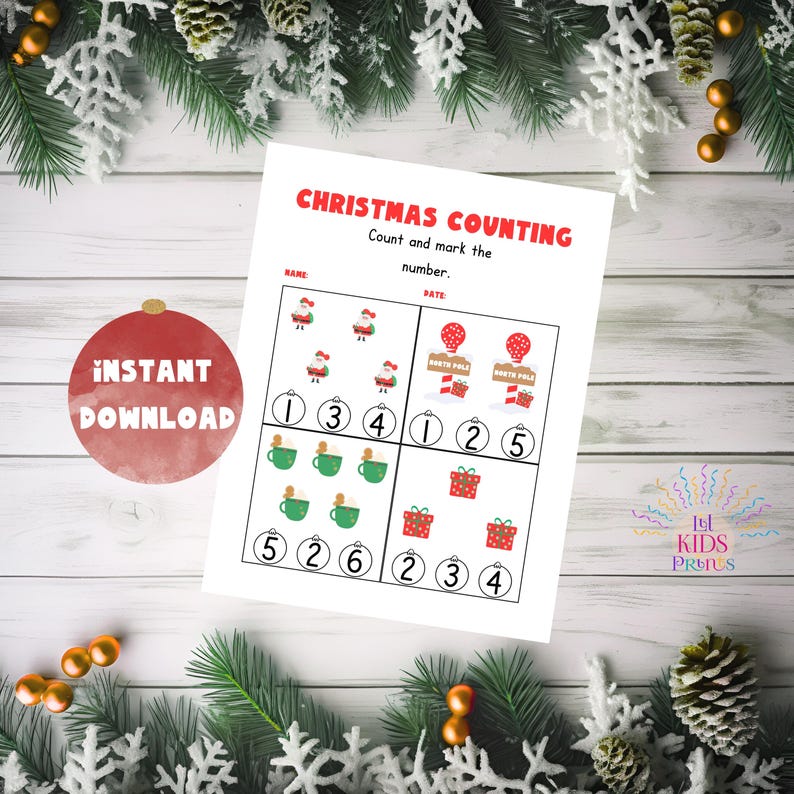 Christmas Counting Worksheet | Kids Math Activity | Learn Numbers & Digits | Preschool Printable | Instant Digital Download