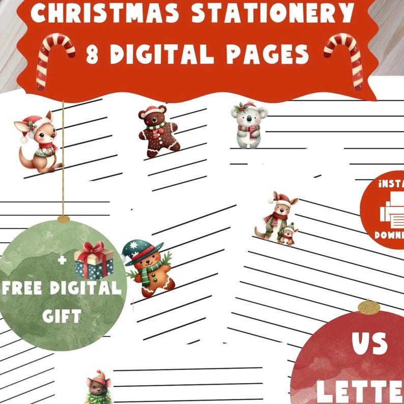 Christmas Kids Activity Bundle | 8 Printable Holiday PDF Sheets | Cute Christmas Stationery for Children | Instant Download