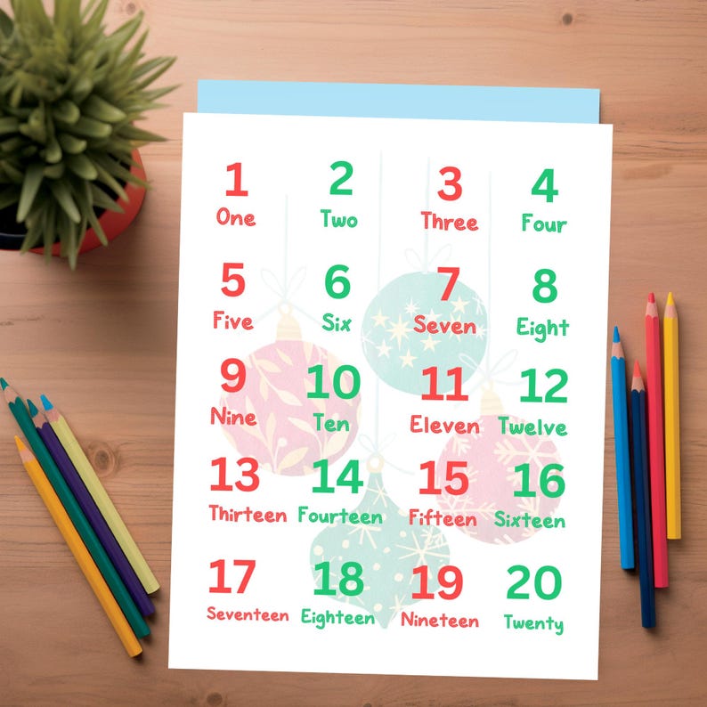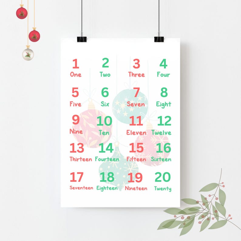 Christmas Number Poster for Kids | Printable Learning Decor | Numbers & Figures | 8.5x11 PDF | Instant Download