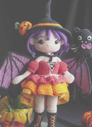 Crochet MORGANA doll pattern, Halloween doll pattern, crochet doll patterns, PDF file in English, French, German, Spanish, Portuguese