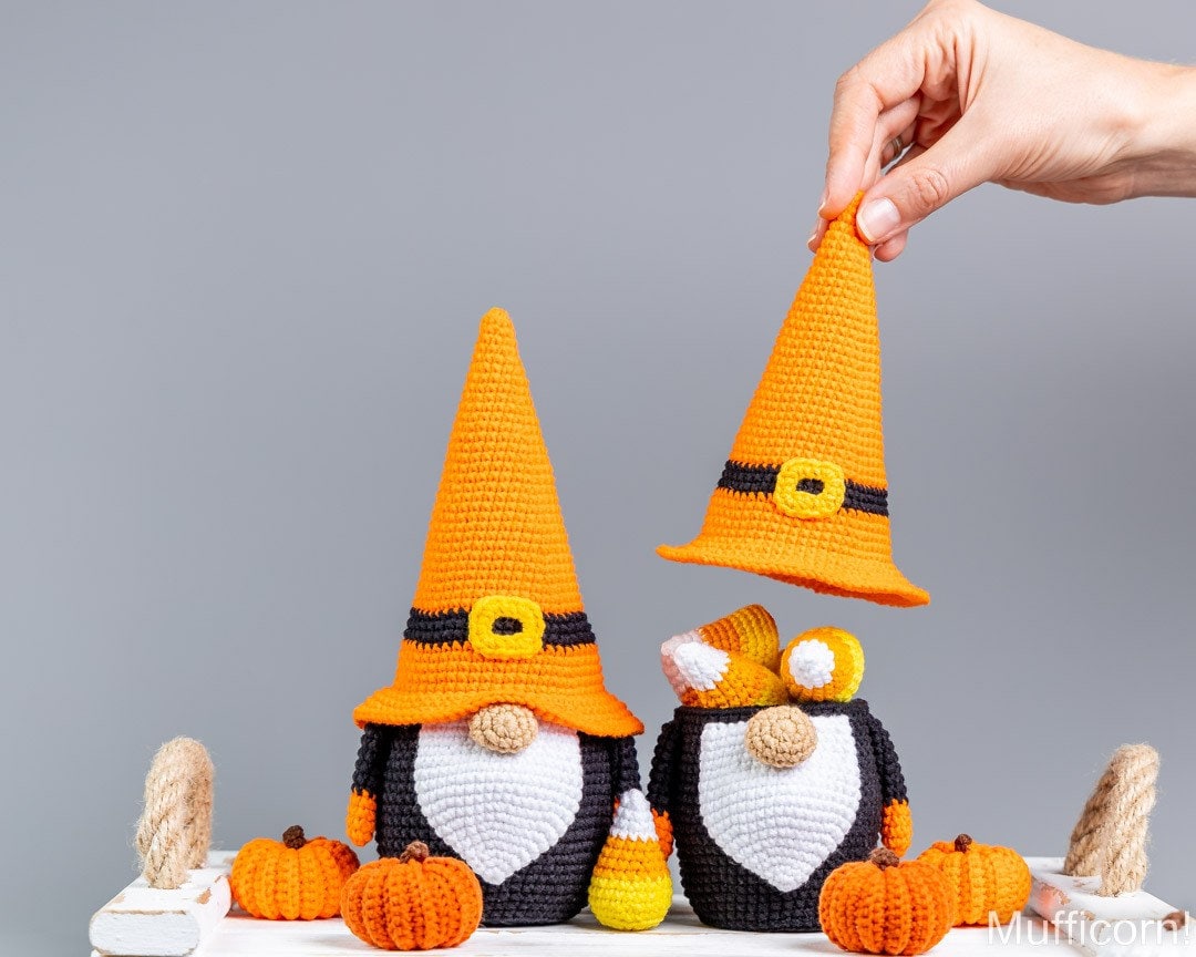Crochet patterns Halloween gnome bundle with bat and pumpkin, Halloween crochet gnome pattern, Crochet pumpkin pattern, Crochet bat pattern