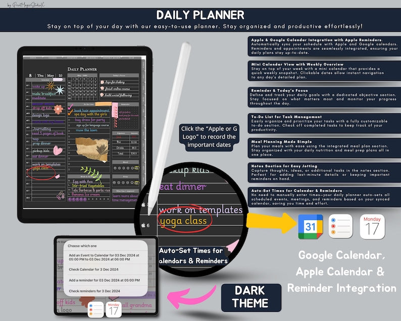 Portrait Version | GoodNotes, Notability, Penly, Xodo Compatible | Weekly + Daily Planner + Digital Journal