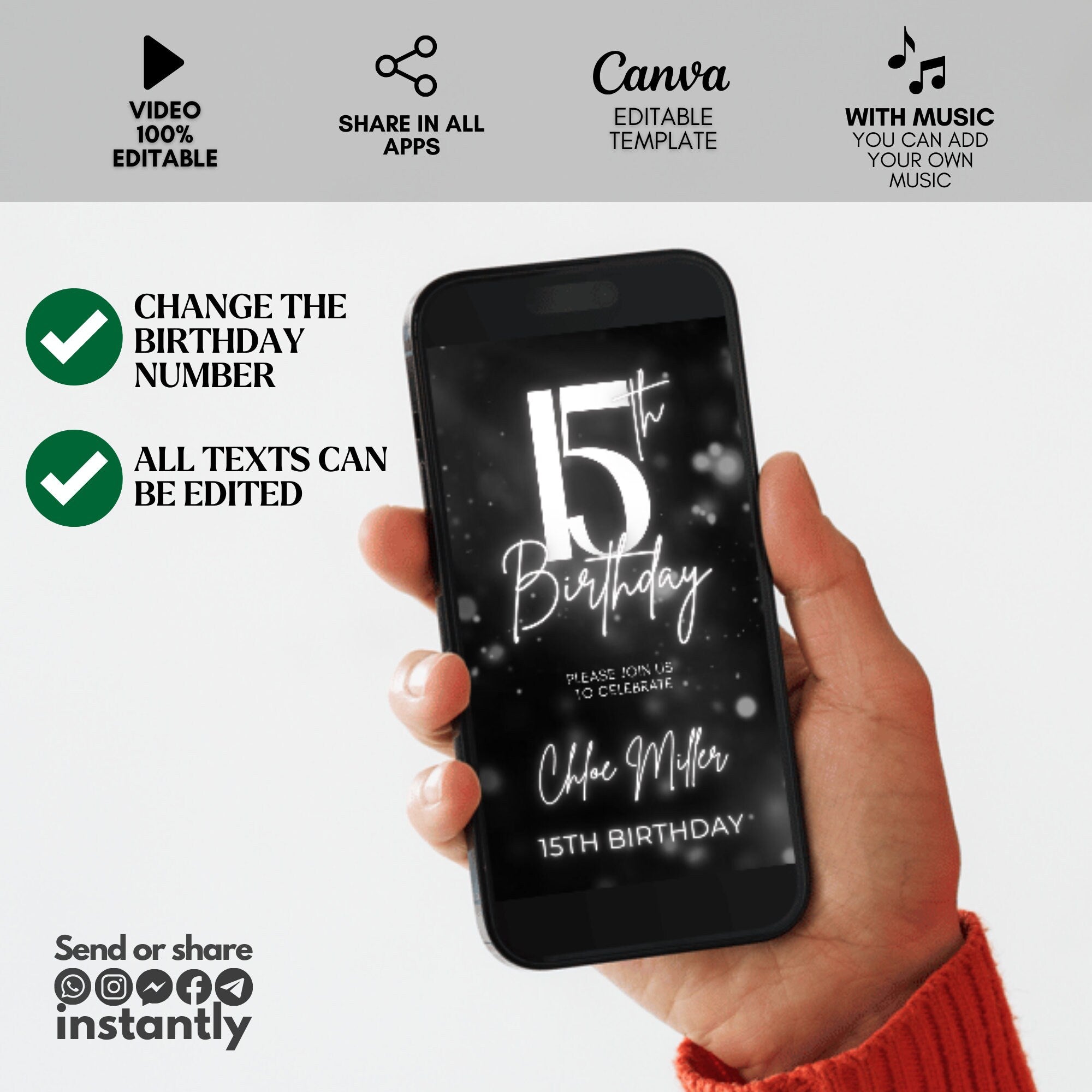 💎 Make your 15th birthday unforgettable with this glittering digital video invitation — modern, elegant, and designed to impress your guests!