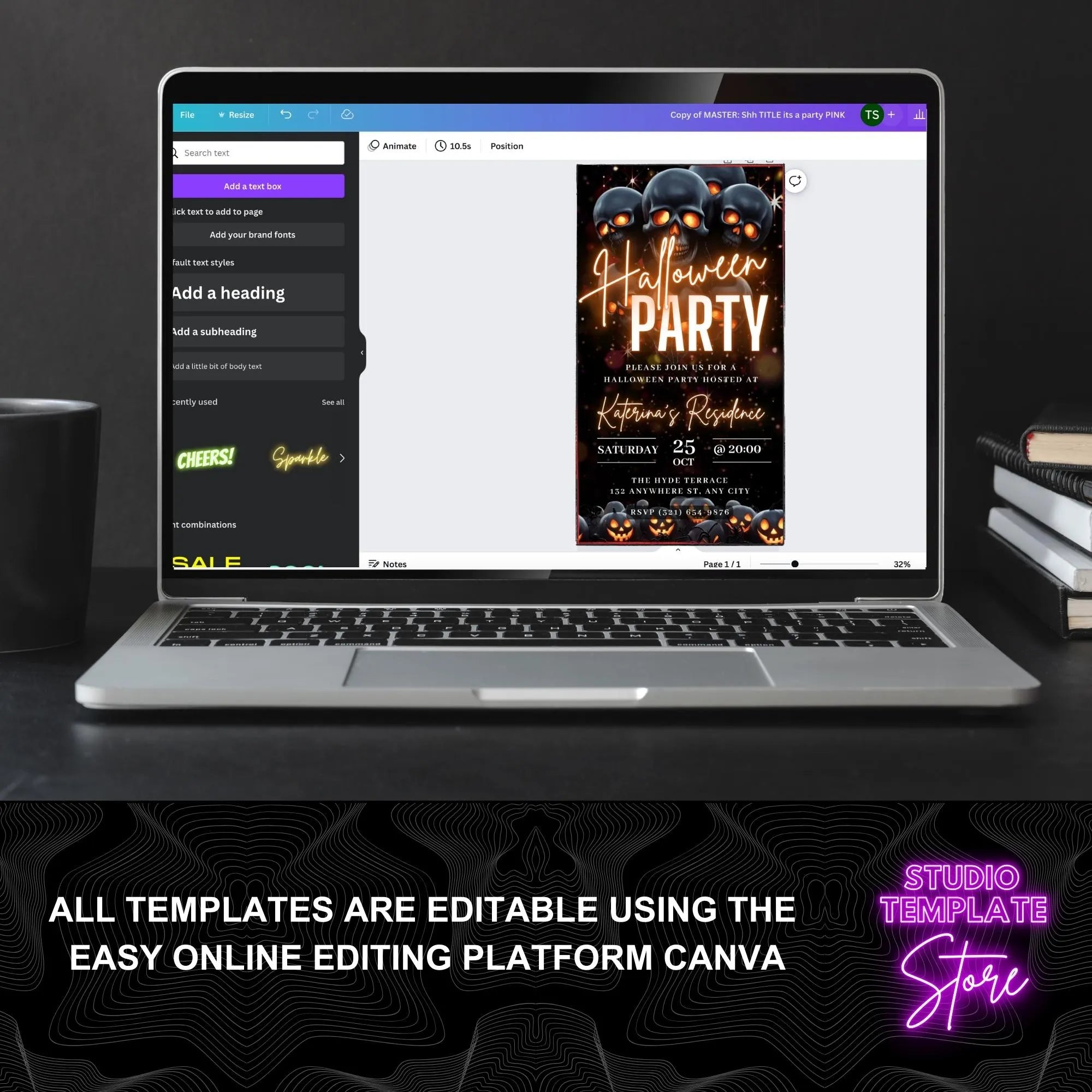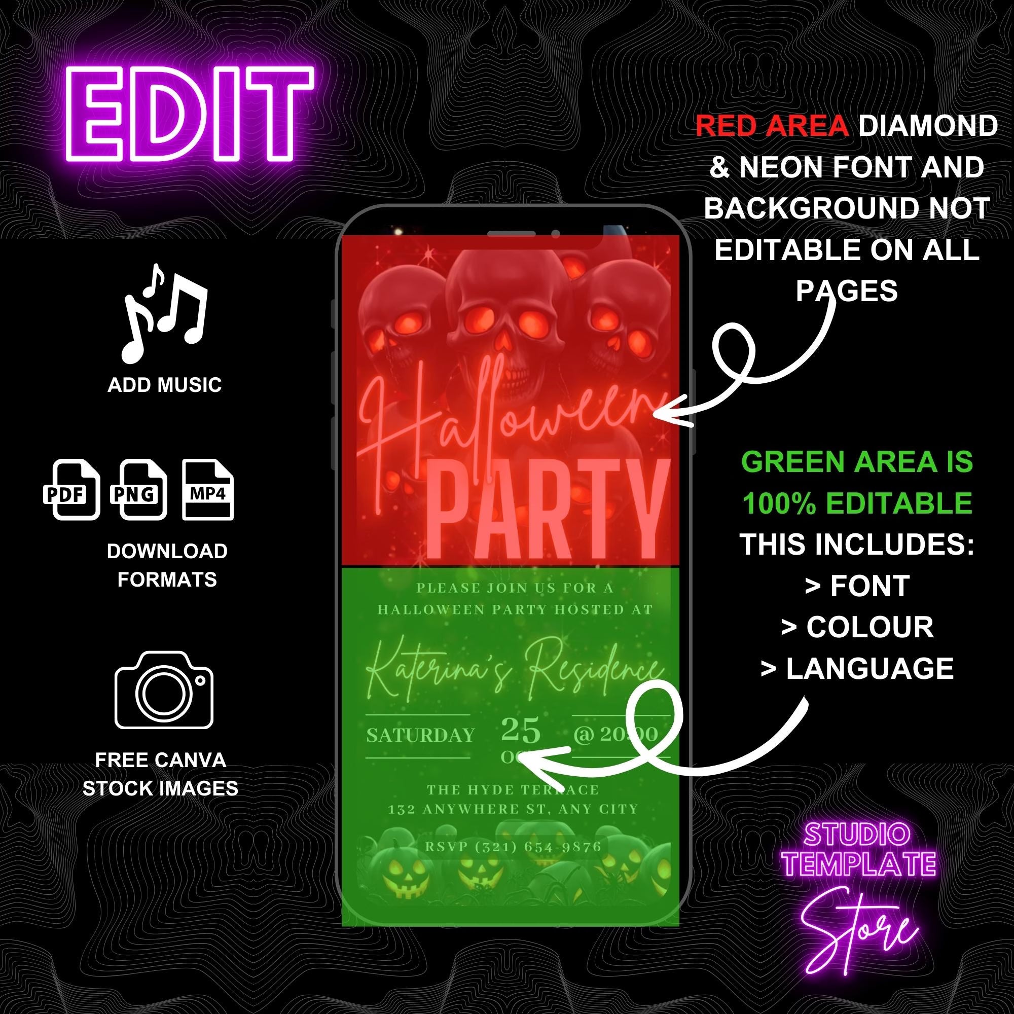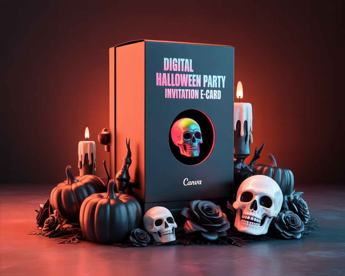 Digital Halloween Party Invitation – Animated Skull Pumpkin Gothic eCard
