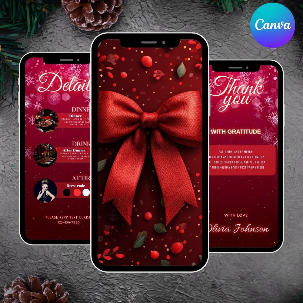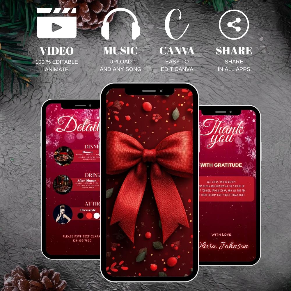 Bring your celebration to life with this festive, animated Christmas party invitation, crafted to play perfectly on phones, social media, and messaging apps.