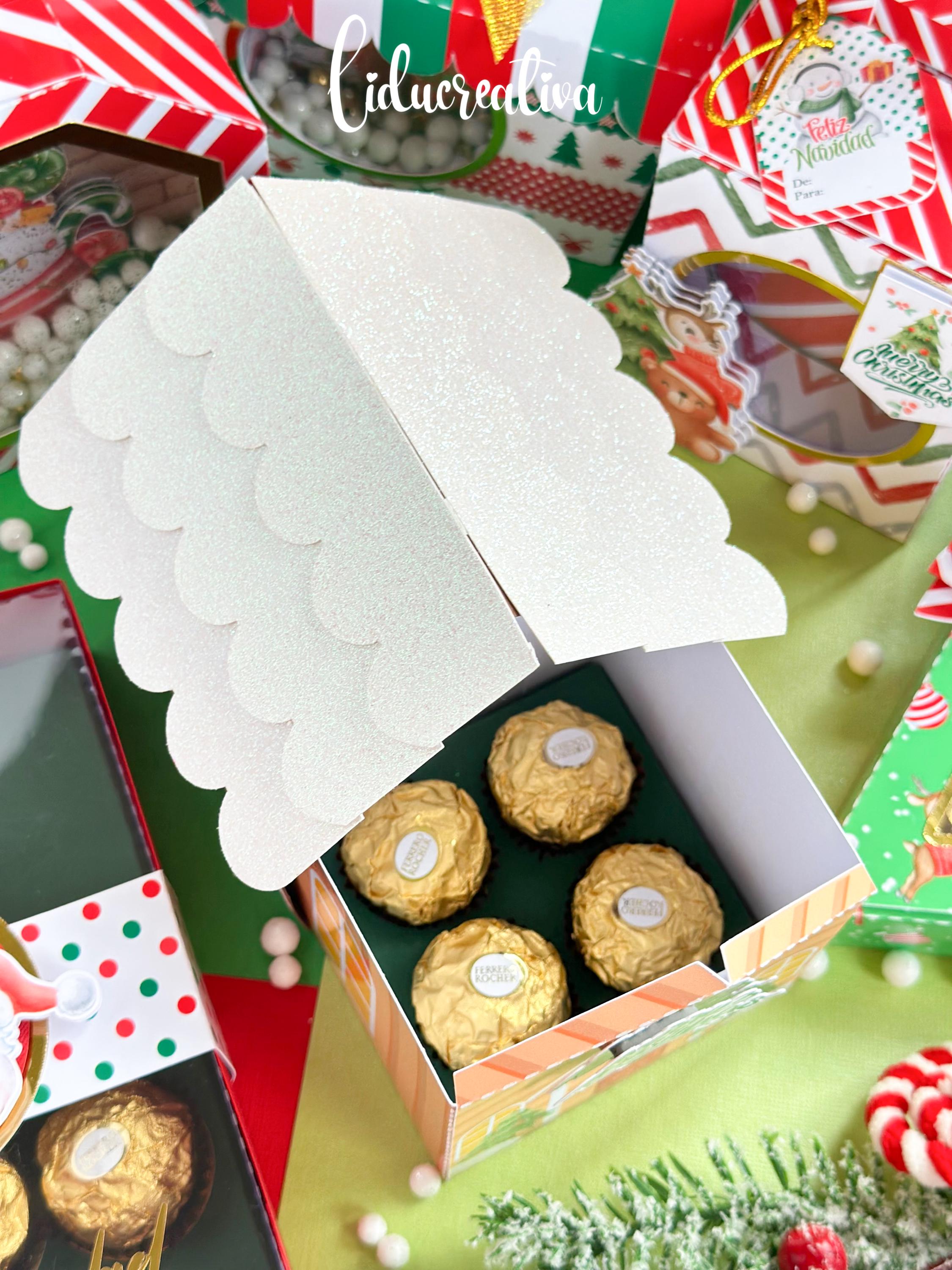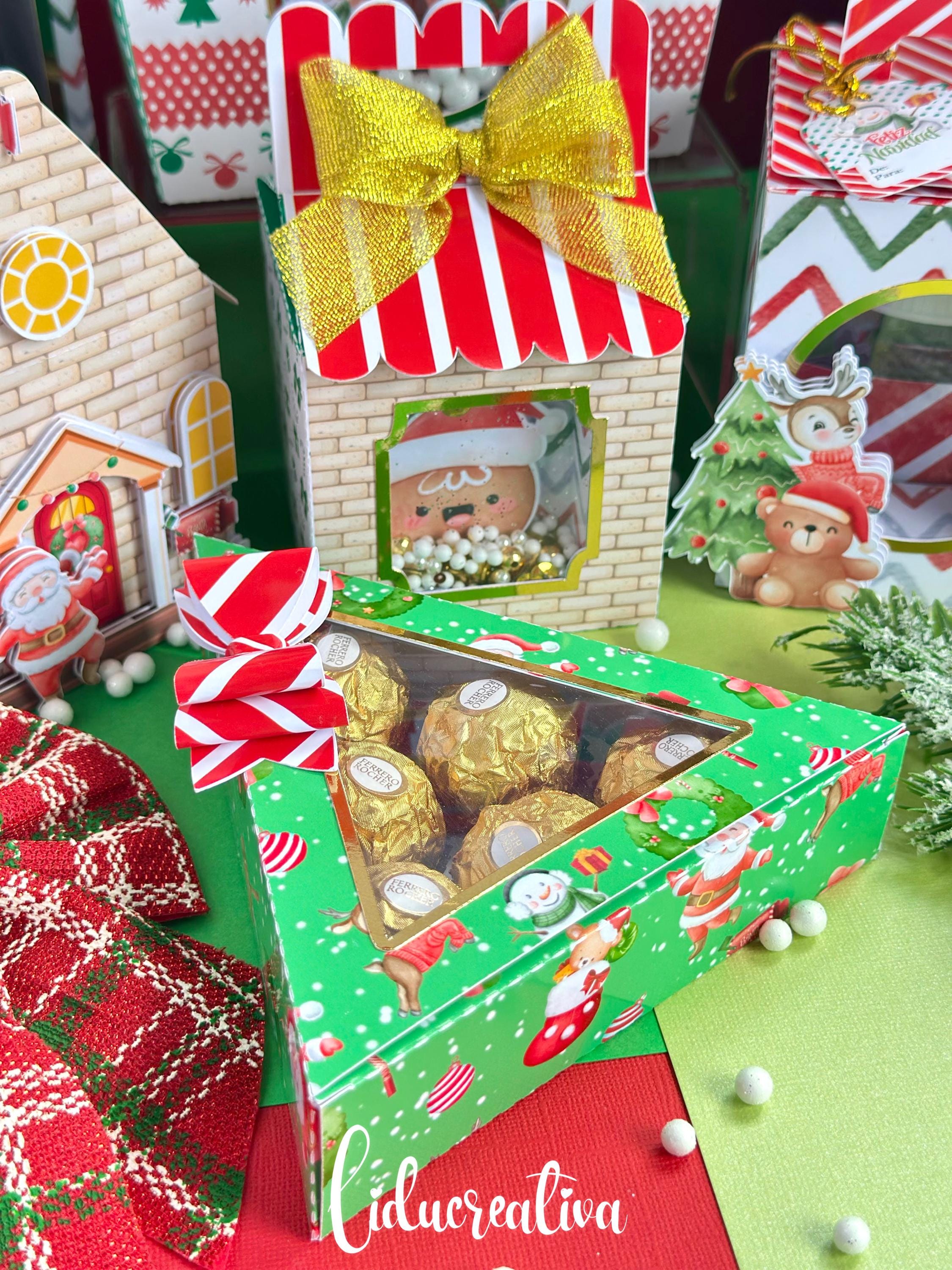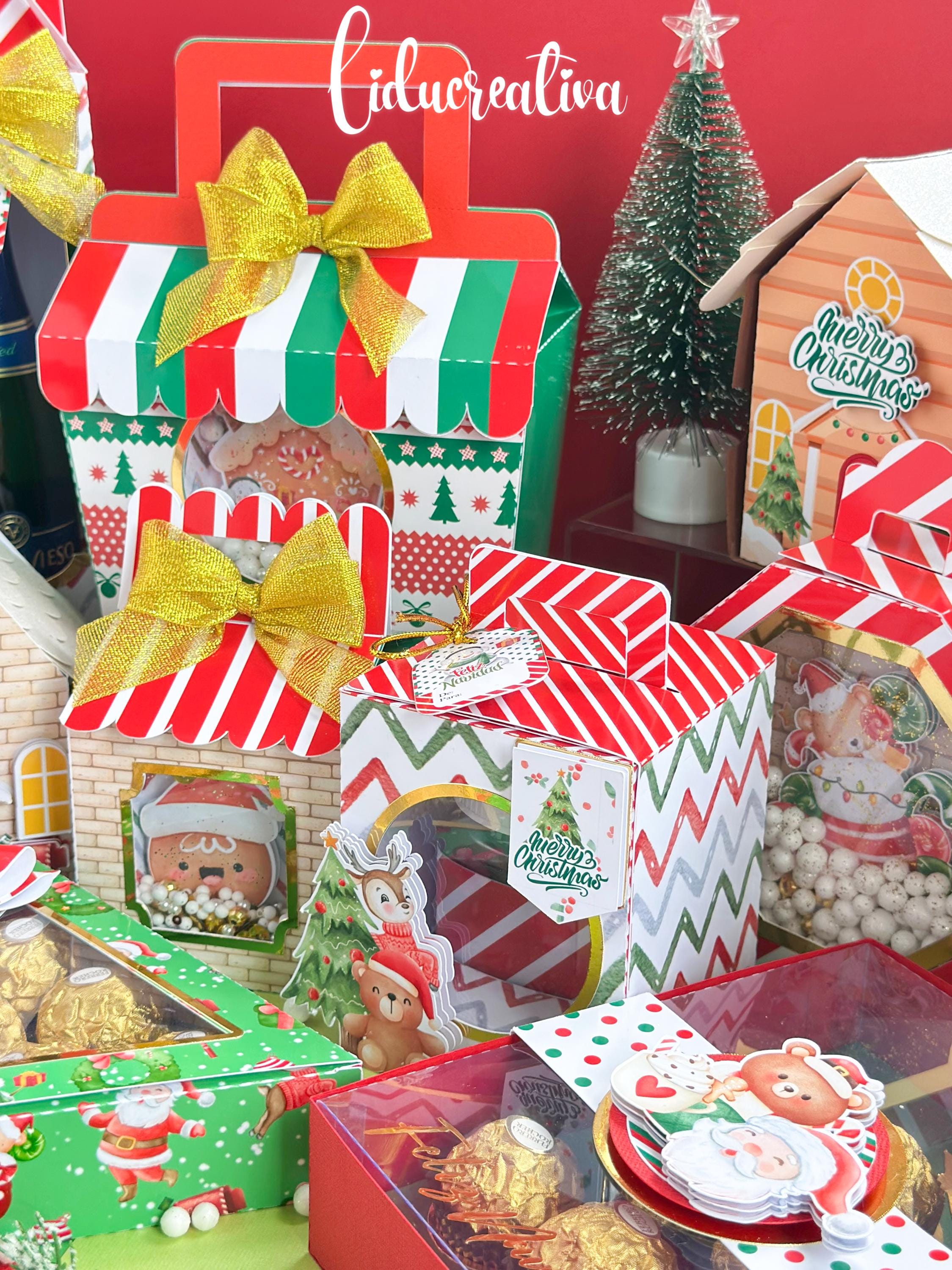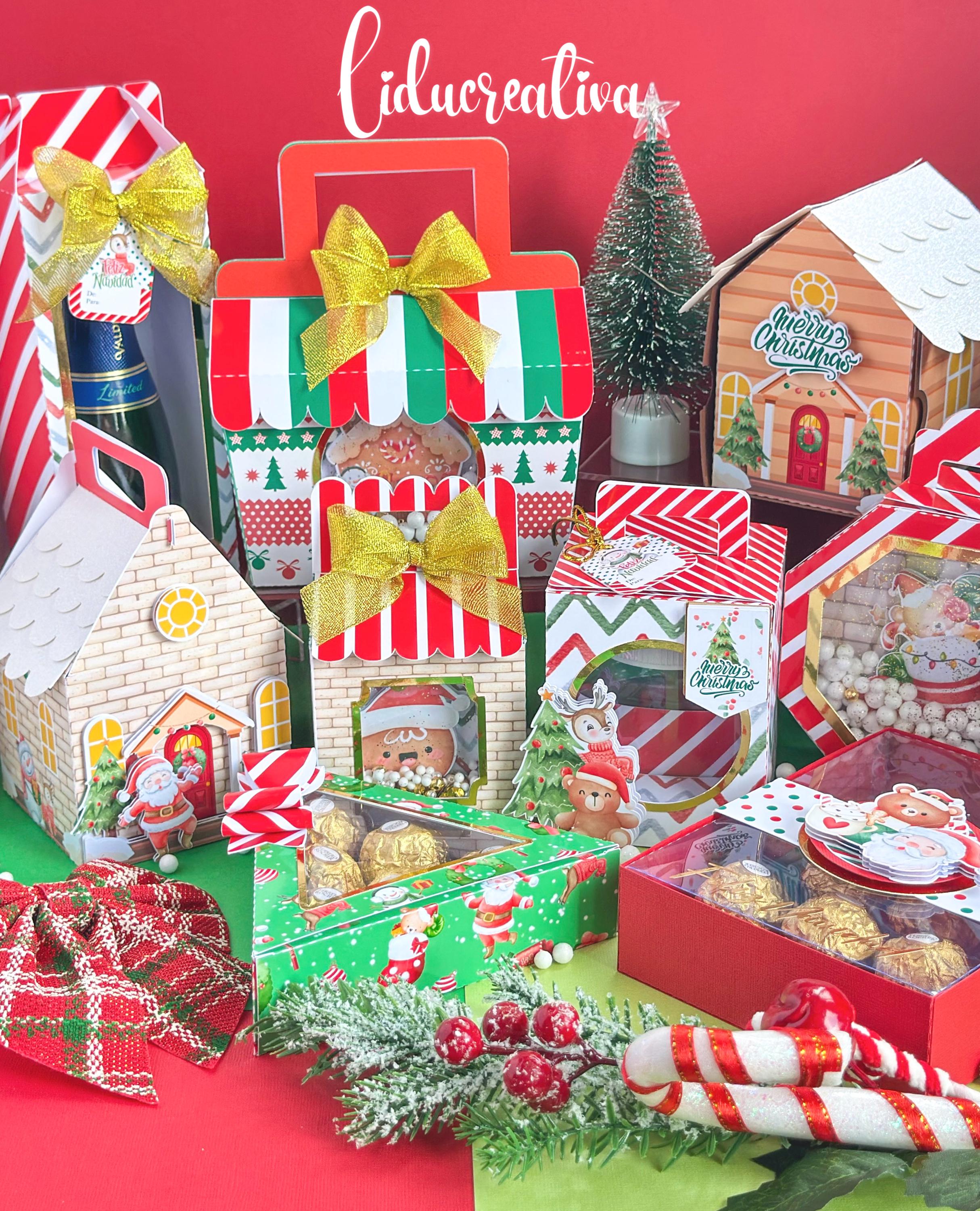9 templates (mini wine box, Christmas house, lunchbox house, tree box, Ferrero triangle, handles box, hexagonal box, shaker briefcase, shaker box) |