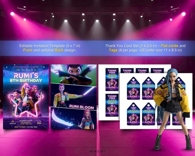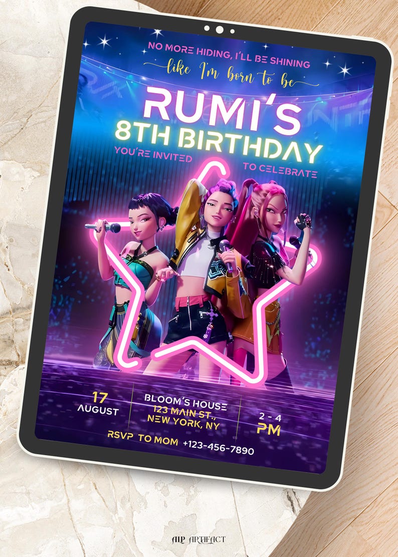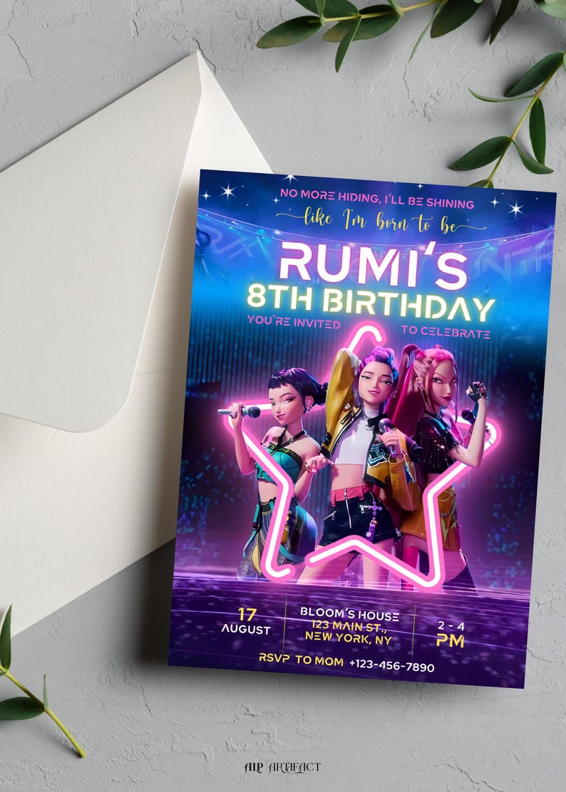 š¤ Kpop Demon Hunters Stars Invitation | Anime Girl Group Birthday Invite