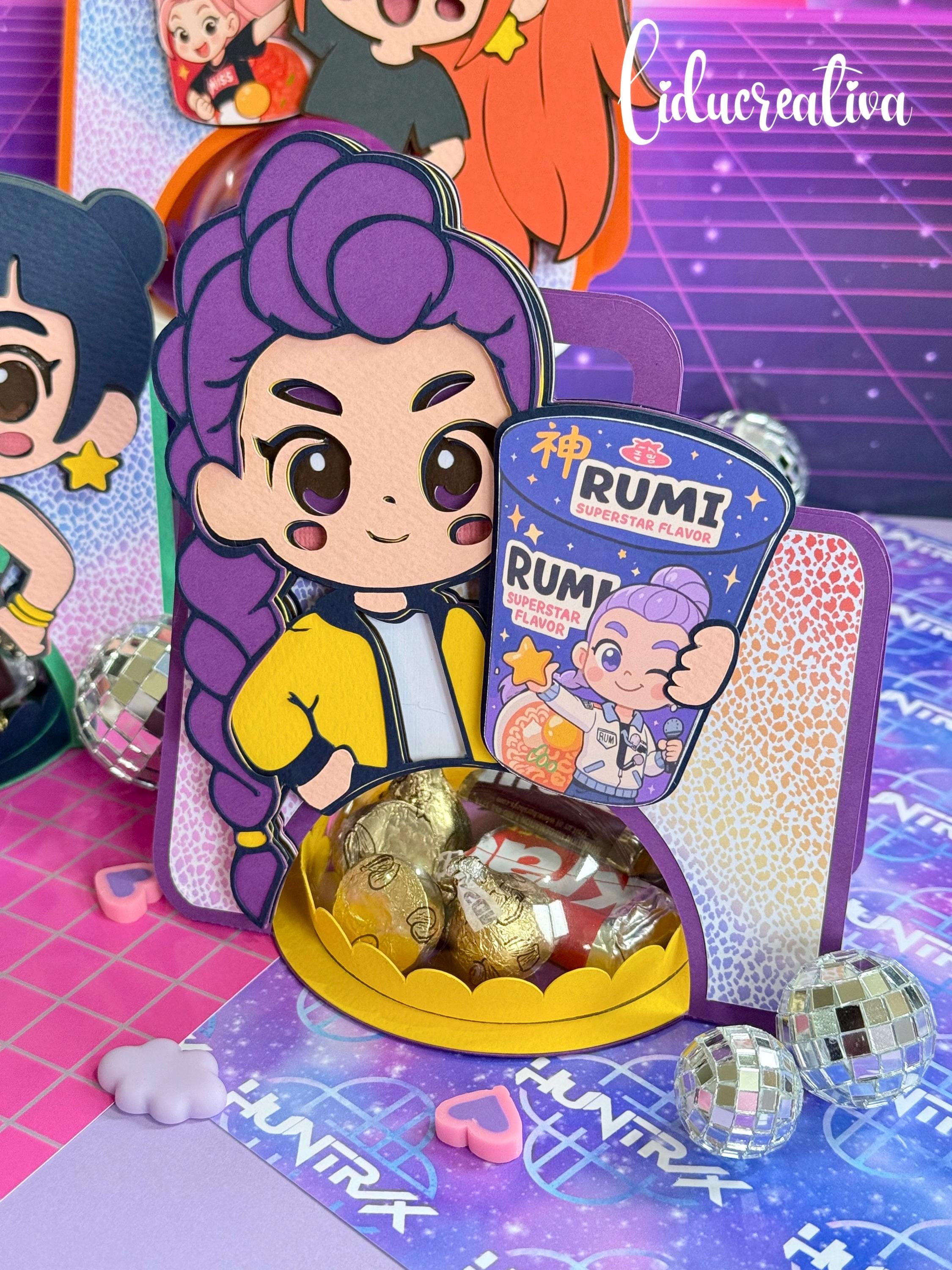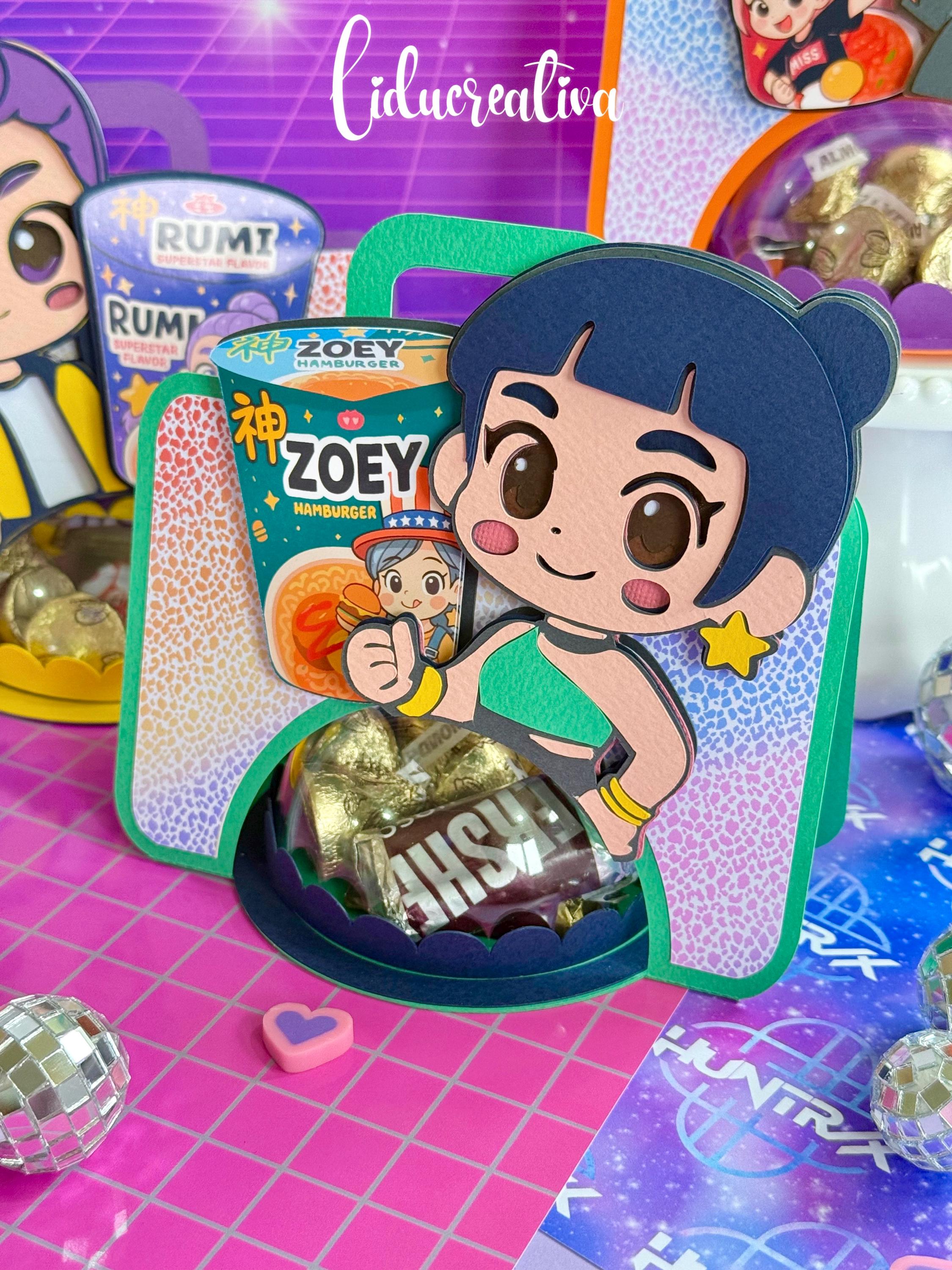These printable candy holders deliver a playful K-Pop vibe with three adorable characters — Rumi, Mira, and Zoey — designed to brighten party tables and favor bags.