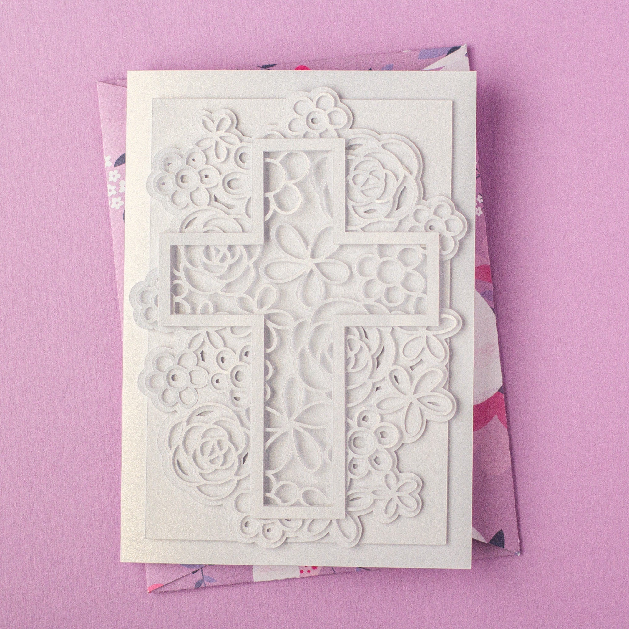 This is a digital product only. No physical card will be shipped. After purchase, download the files instantly and start creating your layered floral cross card right away.