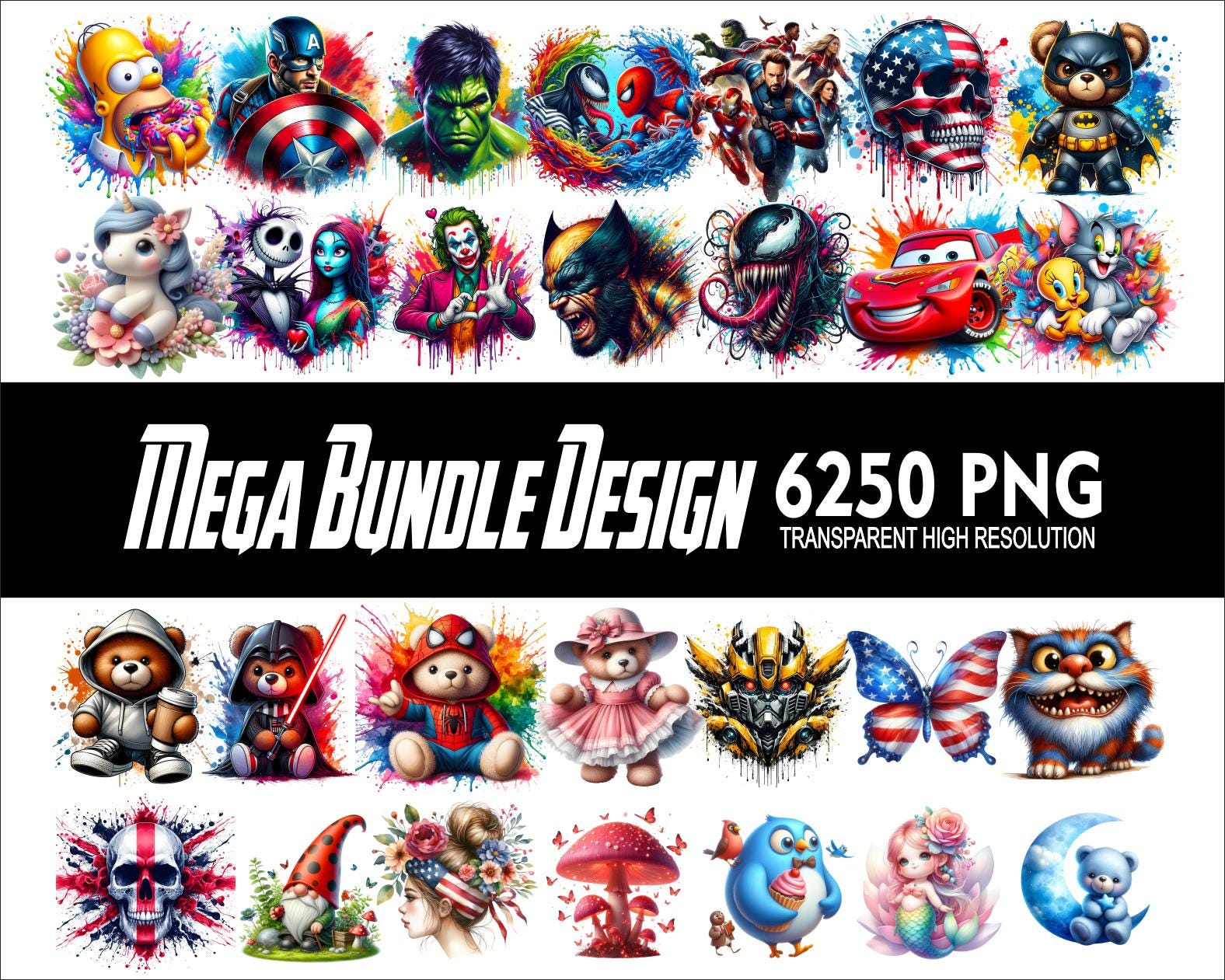 MEGA BUNDLE 6250 Png Design Bundle Cartoon Character PNG Tshirt Mug Tumpler Design 300Dpi High Resolution Transparent Png