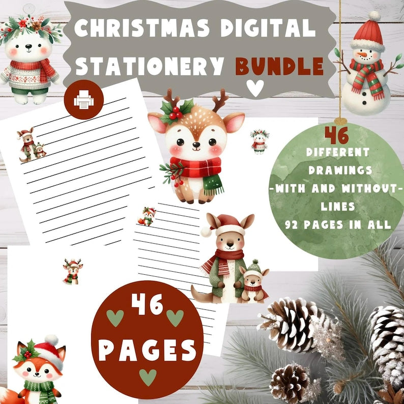 Mega Christmas Kids Stationery Pack • Printable Lined & Unlined Paper • Holiday Writing Pages • Cute Christmas Illustrations • PDF Download