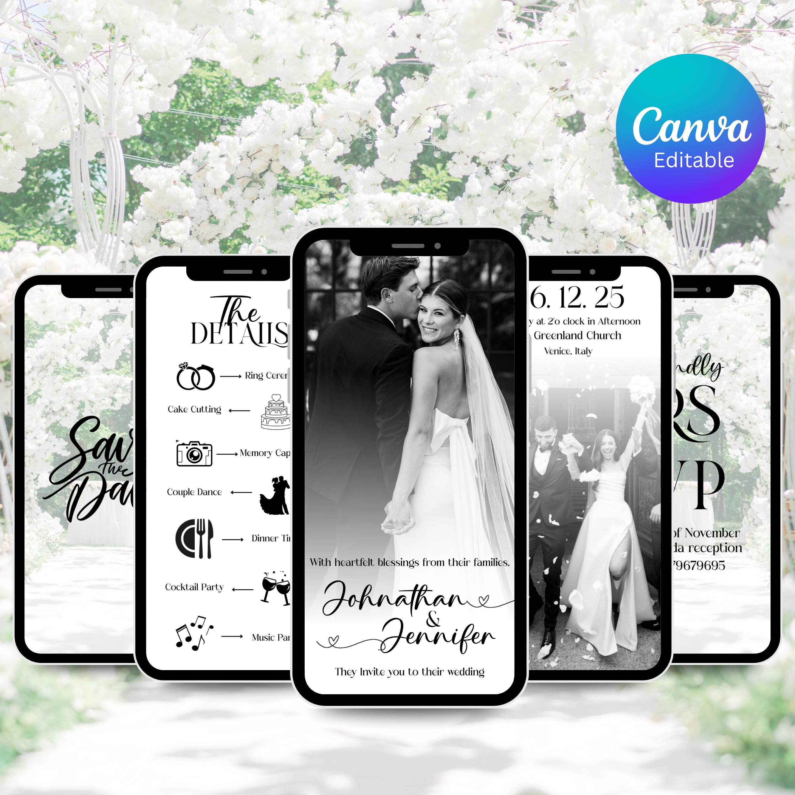 💍 Modern Digital Wedding Invitation with RSVP Link – Editable Canva Template