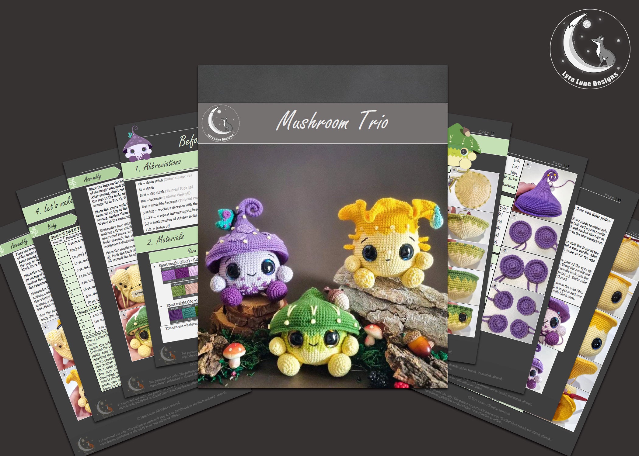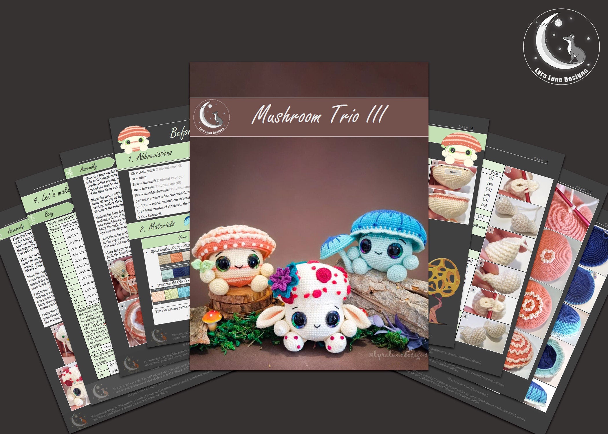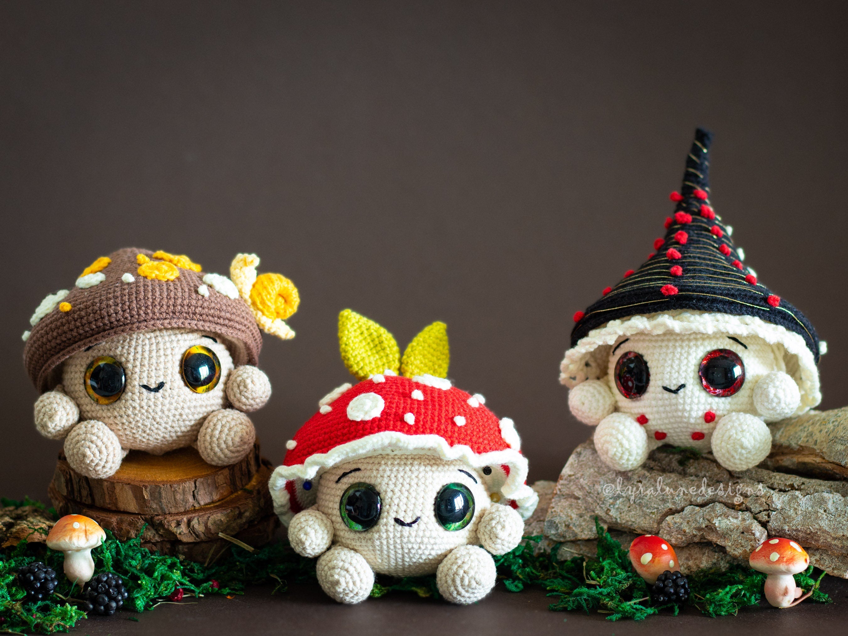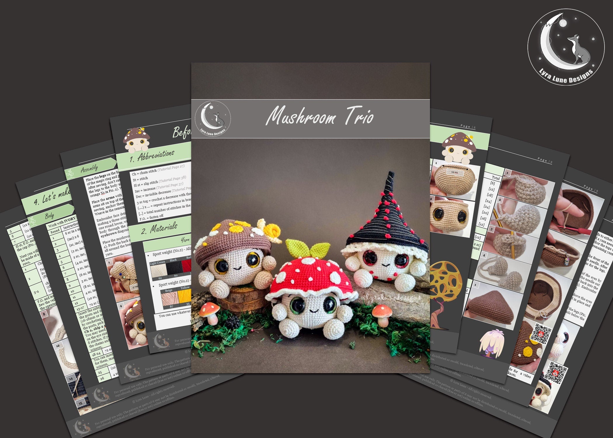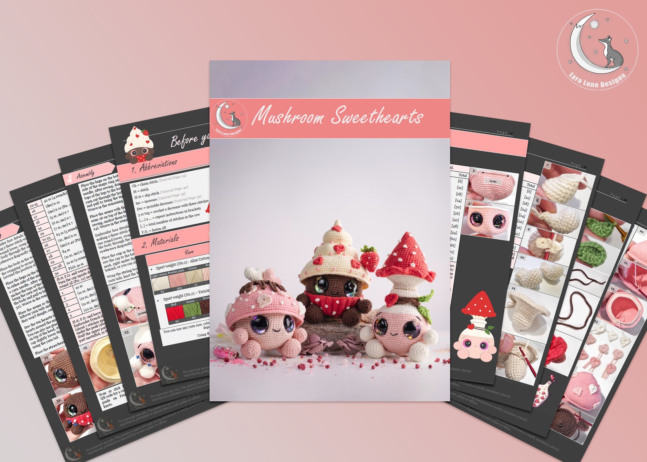 • 12 Mushroom Amigurumi Crochet Patterns (Trio I, Trio II, Trio III, Sweethearts)