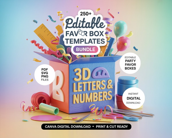 Playful, precise 3D letter templates that turn cardstock into eye-catching shaker or solid letters for signs, parties, ornaments, and small business products.