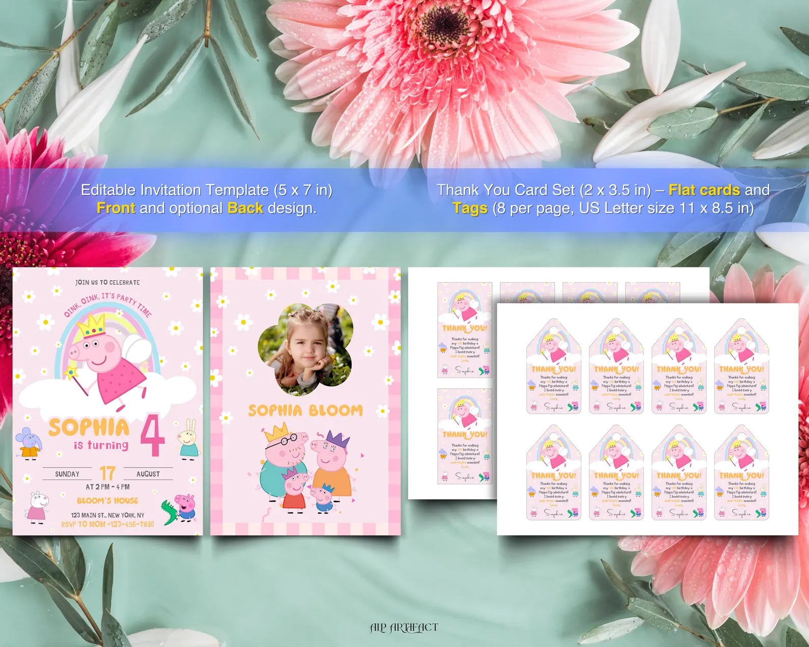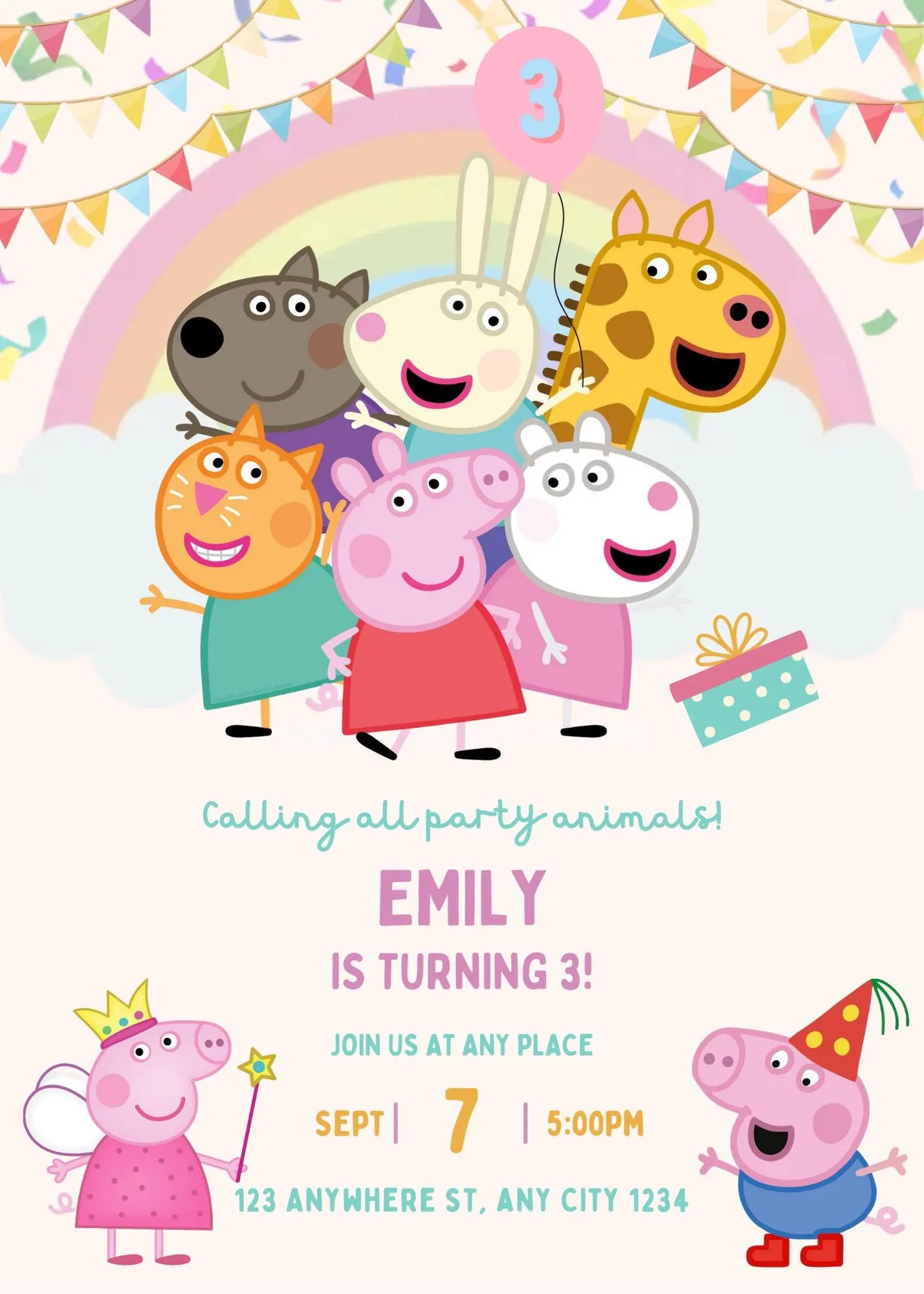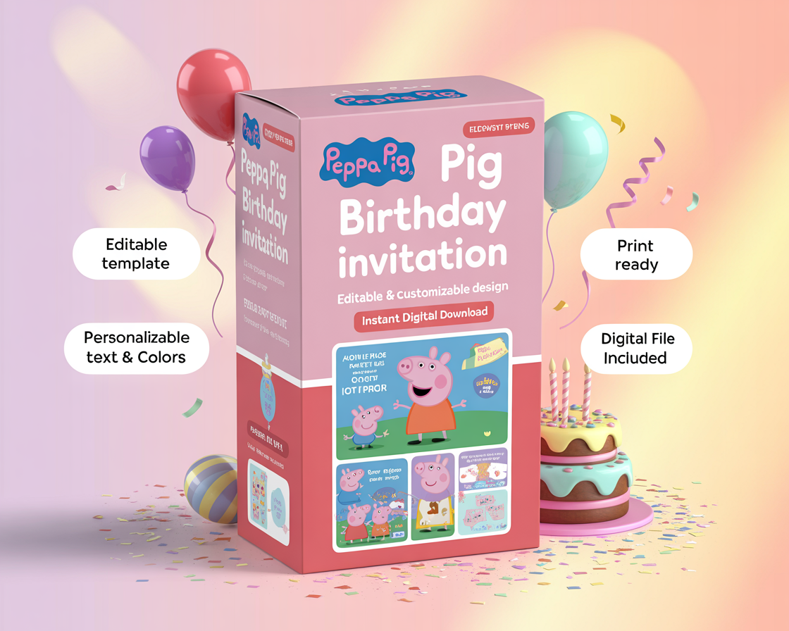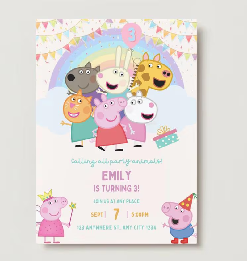 Peppa Pig Birthday Party Invitation – 3 Designs in 1 Pack