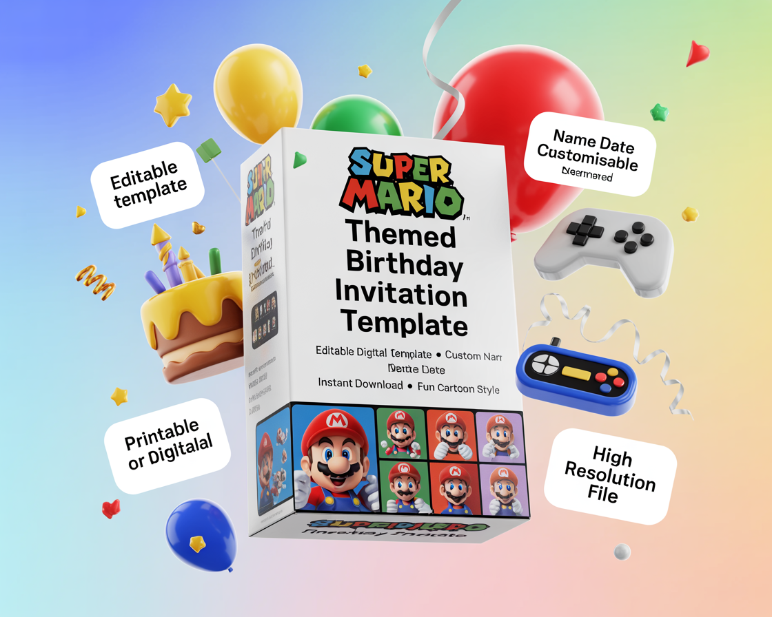 💌 Create a fun, playful, and personalized Mario Bros. birthday invitation today—download instantly & start customizing!